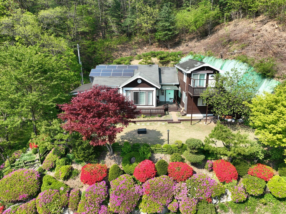 Tā ir 34-pyeong koka māja, ko uzcēla slavenais lauku lauku mājas uzņēmums Rojas, un izolācija ir laba, un gaiss naktsmītnē būs patīkams. Izmantojot vācu sistēmas logu (Eun Chang-ho), telpa vasarā ir vēsa, ziemā tā ir silta, un augstākās klases ūdens ieleja tieši pie naktsmītnes (400 pyeong) (papildus pieaugušo krūšu dziļumam), mazu bērnu ūdens rotaļu laukums utt. Tā būs telpa, kurā varēsiet patiesi atpūsties un atgūt enerģiju prom no pilsētas ar labiekārtotiem sezonas ziediem un kokiem. * Ugunskura kurināšana ar ozolkoka malku, * Glāze vīna un Kokogļu grils (Hoengseongwoo, jūras veltes utt.) * Dziedinošā ūdens skaņa ASMR, * Ziedošs dārzs, * Sniegota ainava, * Zvaigžņu vērošana naktī * Terase pilna ar sauli, kas čalo putnu skaņās... * Somu pirts * Mūsu naktsmītnē ir daudz viesu, kuri to apmeklē sezonāli. Ir dažas lietas, ko nevar iemūžināt bildēs, tāpēc, lūdzu, nāciet, izbaudiet to un dziediniet. ^ ^