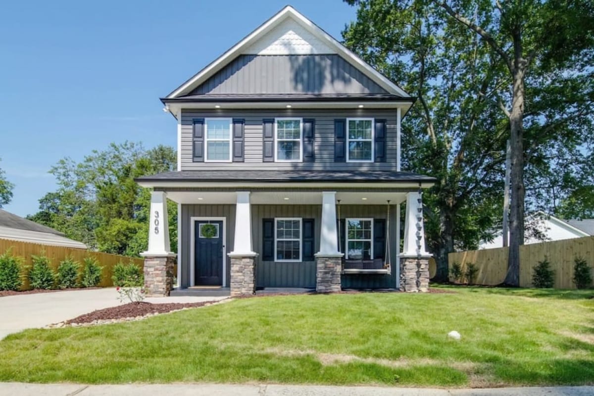Padariet šo jauno, 3 BR/3 vannasistabu par Šarlotes apgabala mājas bāzi! Tikai 2 kvartālu attālumā no profesionālā beisbola stadiona un DROŠINĀTĀJU rajona. Plašs un atvērts apakšstāva stāva plāns. Priekšējās verandas šūpoles un privāta pagalma atpūtas telpa ar akcenta apgaismojumu un infrasarkano grilu. Liela galvenā istaba ar īpašu darba vietu. Bezvadu uzlādes paliktņi, pulksteņa radio un bagāžas plaukti visās guļamistabās. Pack N Play un augstais krēsls ir pieejams ģimenēm. Apskatiet arī mūsu māsas īpašumu! airbnb.com/h/gracest-gastonia-nc