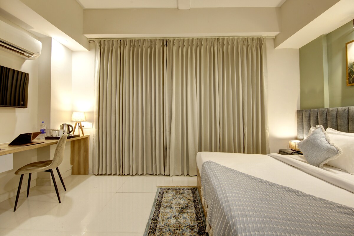 Experience our Luxury Room with Balcony in Sector 57, Gurgaon. Just minutes from Artemis Hospital, Golf Course Road, and Sector 54 Chowk Metro, it offers seamless access to the city. Perfect for medical, business, and leisure stays, the room combines modern comfort with elegance. Licensed to host foreign nationals. Early check-in will be subject to availability and chargeable Rs.500 as well as late checkout will also be the same with ₹500 added for every 3 hrs thereafter.