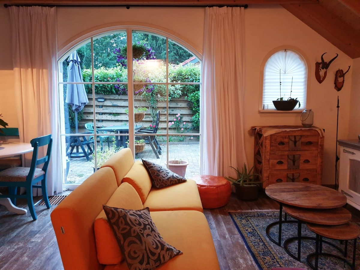 (Aprīkots ar labu Wi-Fi un Google Chromecast) Otterlo ciemata malā un pastaigas attālumā no Nacionālā parka De Hoge Veluwe (Kröller-Müller) atrodas manā kotedžā Flemish Gaai, kas atrodas skaistajā Hoefbos dabas parkā. Ideāla vieta, kur atpūsties un izbaudīt dabu. Mūsu kotedža nesen ir atjaunota, tajā ir divas guļamistabas (1 savienota ar dzīvojamo istabu). Viegli pieejams ar sabiedrisko transportu un automašīnu, un ļoti piemērots pārgājienu dalībniekiem un riteņbraucējiem.