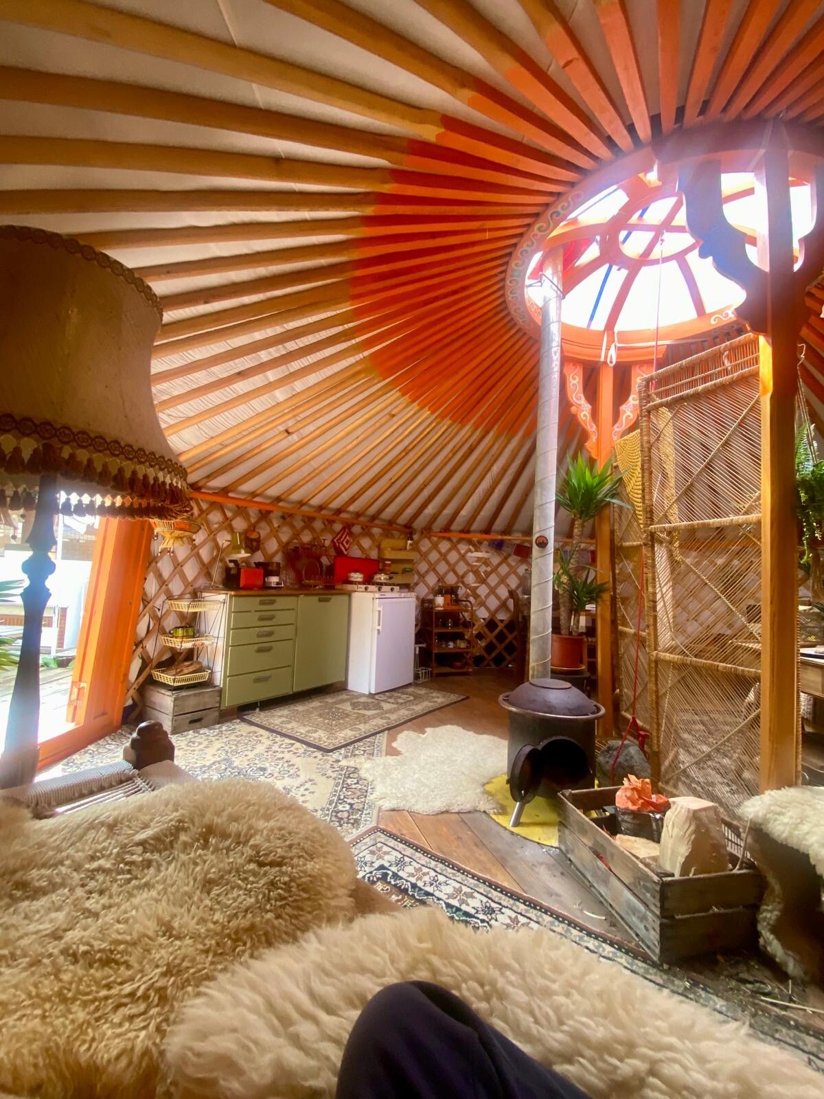 This Yurt is a warm and colourful retreat for two, set in a wide meadow in the heart of nature. Sleep beneath the stars, wake to birdsong, and enjoy peace, privacy and comfort. With a wood stove and private outdoor facilities (eco toilet and hot shower) it’s the perfect place to slow down, reconnect, and enjoy each season. Whether you're here to relax, explore, or simply be, this yurt offers a unique stay full of charm and tranquility.