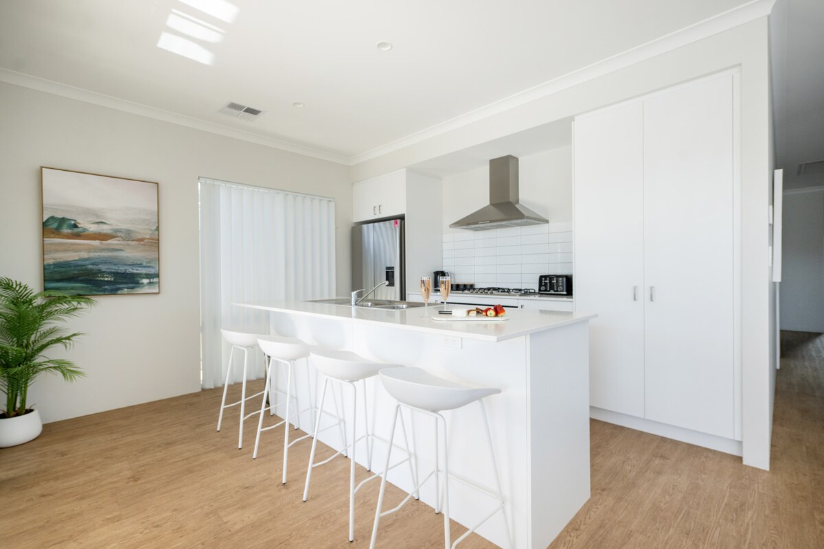 Izbaudiet labāko no Bunbury, pilsētas un pludmales ar kājām! Bunbury 's premier īstermiņa uzturēšanās dzīvoklis. Viens no sava veida, krāšņs dzīvoklis 1 minūtes gājiena attālumā no pludmales, pāri ceļam no masīva sporta laukuma, 5 minūšu gājiena attālumā no pilsētas. Atpūtieties šajā stilīgajā, relaksējošajā 2 guļamistabu dzīvoklī ar pilnu virtuvi un atpūtas zonām. Ir nodrošinātas visas mājokļa ērtības, lai jūs varētu atpūsties un izbaudīt uzturēšanos. Brokastīs ir iekļautas maizes, ievārījumi un graudaugi kopā ar pienu, tēju un kafiju.