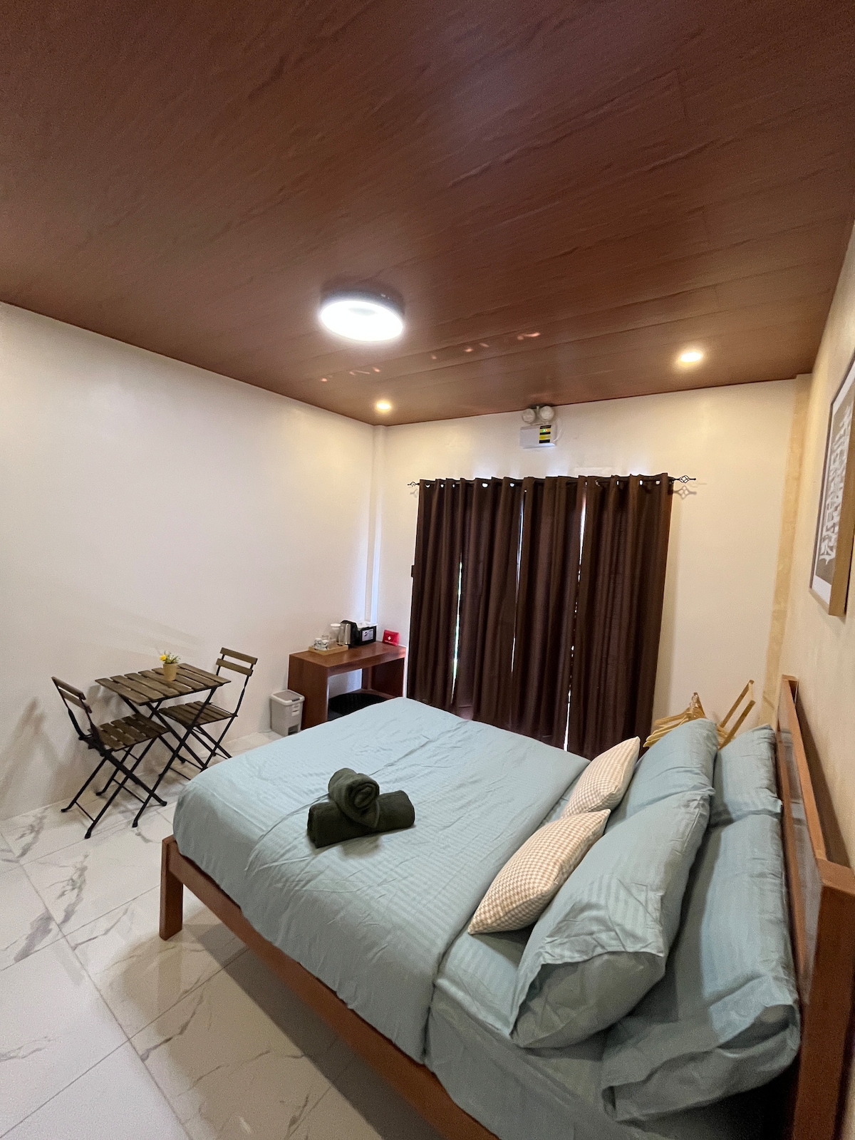 Mūsu mājīgais studijas tipa dzīvoklis tagad ir pieejams gan ikdienai, gan nedēļai 🌴 📍 Atrodas Purok 5, General Luna, pretī Haven Suites 🚗 Tikai 3–5 minūšu brauciena attālumā līdz pludmalei, kafejnīcām, bāriem un restorāniem. ✨ Kas jums patiks: Divguļamā 🛏️ gulta (Queen) Istaba ❄️ ar gaisa kondicionētāju 🚿 Privāta vannasistaba ar karstu un aukstu dušu un bidē 🪑 Darba galds 📶 Spēcīgs Wi-Fi savienojums 🍳 Kopīga āra ēdiena gatavošanas zona 🧊 Ledusskapisun elektriskā tējkanna Ir nodrošināti 🧴 dvieļi un tualetes piederumi