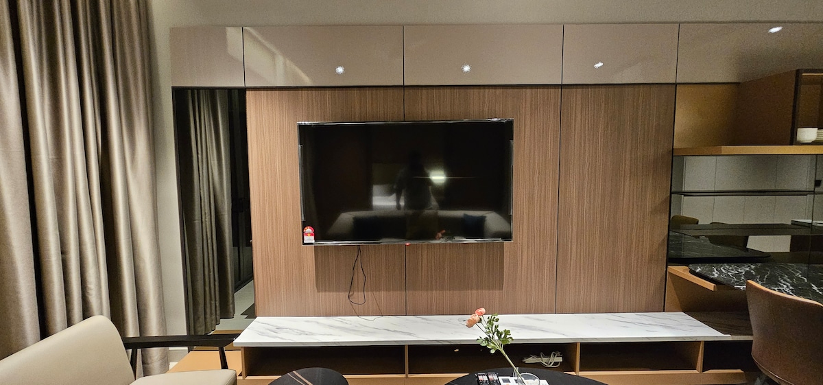 Modern Antara Fenting Suites in Genting Highlands apartment with bright living room, Smart TV, Astro streaming, high-speed WiFi, and an Automatic Mahjong Table for family fun. Open dining, cozy bedrooms with TVs, and stylish décor. Walking to Genting Casino, SkyWorlds Theme Park, Arena of Stars, SkyAvenue Mall, and Genting Cable Car within 15 minutes by the Link Bridge. —perfect for family or group getaways.