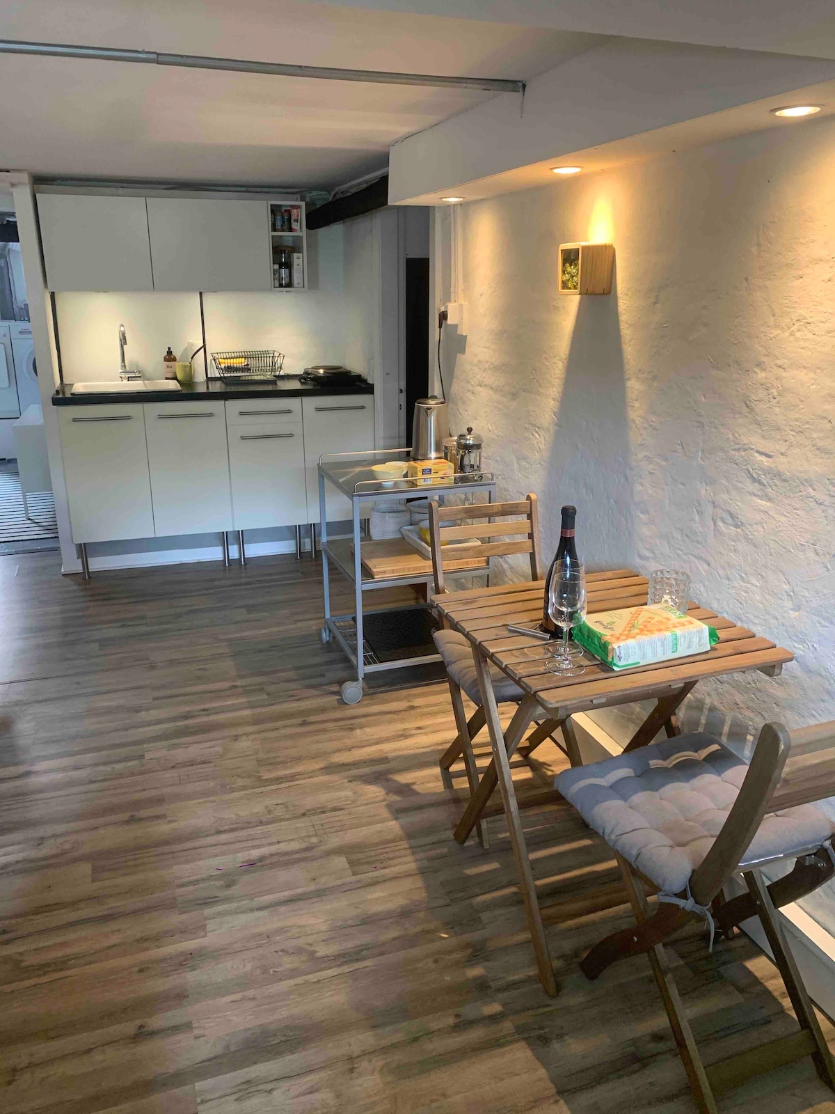 Pagraba dzīvoklim ir atsevišķa ieeja. Dzīvoklis ir skaisti iekārtots un viss ir modernizēts. Māja atrodas 5 minūšu gājiena attālumā no S-tog stacijas un 15 minūšu brauciena attālumā no Kopenhāgenas centra. Mežs un pludmale ir sasniedzama ar velosipēdu. Iepirkšanās un ēdināšanas iespējas ir pieejamas gan velosipēda, gan pastaigas attālumā. Vēlamies informēt, ka mums ir ļoti draudzīgs suns, kurš var atrasties dārzā, kad esam mājās.