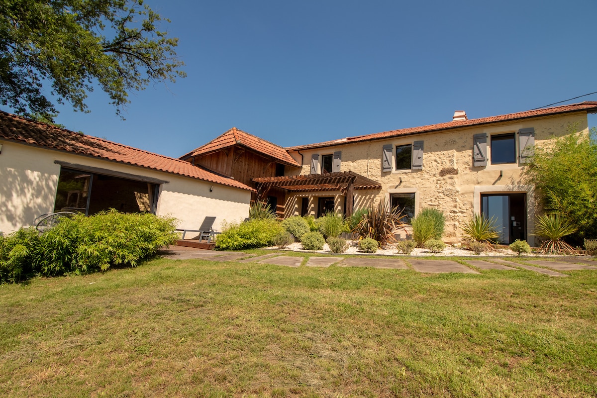 Ancienne Ferme Gasconne Climatisée et restaurée. Très calme. Grande terrasse en bois. Piscine privative chauffable à 34°C, partiellement à l’ombre d’une grange ouverte, et sécurisée en face sud par un abris piscine télescopique offrant des vues dégagées sur les espaces verts entourant la propriété. Idéal pour WE entre amis, vacances en Famille, Séminaires ... Capacité de la Villa : 15 personnes / 4 chambres Capacité de la Villa avec l’option appartement attenant : 23 personnes.