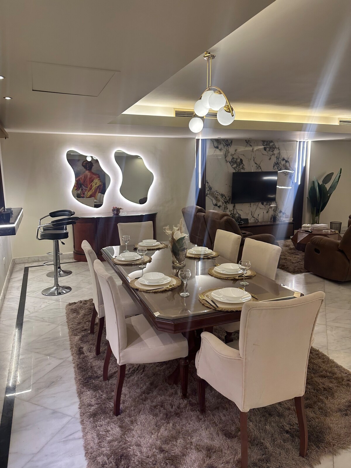 Ļaujieties 5 zvaigžņu dzīvošanai šajā eleganti iekārtotajā, pilnībā mēbelētajā 2 guļamistabu viesnīcas tipa dzīvoklī pašā Mohandesinas sirdī. Šī izcilā atrašanās vieta ir ideāli piemērota darījumu un atpūtas ceļotājiem un piedāvā nepārspējamu komfortu, modernas papildērtības un ērtības bez piepūles. , kurā ietilpst: ✔ Augstākās kvalitātes mēbeles un elegants interjers ✔ Ātrgaitas internets un viedie televizori ✔ Pilnībā aprīkota virtuve nevainojamam ceļojumam ✔ Diennakts apsardzes un konsjerža pakalpojumi ✔ Gleznains skats uz Zamalek klubu