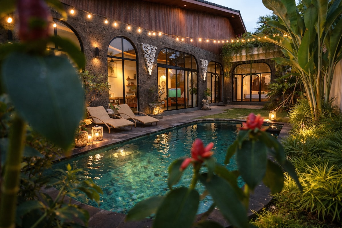 Flood-free area Welcome to Villa Dwipa ☀️ A place where you can indulge yourself in the beauty and luxury of a completely private Bamboo Villa and all it’s facilities surrounded by peaceful nature 🍃 From a dive in the private pool, watching a movie on the drop down cinema screen and having a neighbor-less party in the living room to spending peaceful quality time, cozily unwinding on the balcony and everything in between, whether you're friends or lovers, we guarantee you a good time 😊