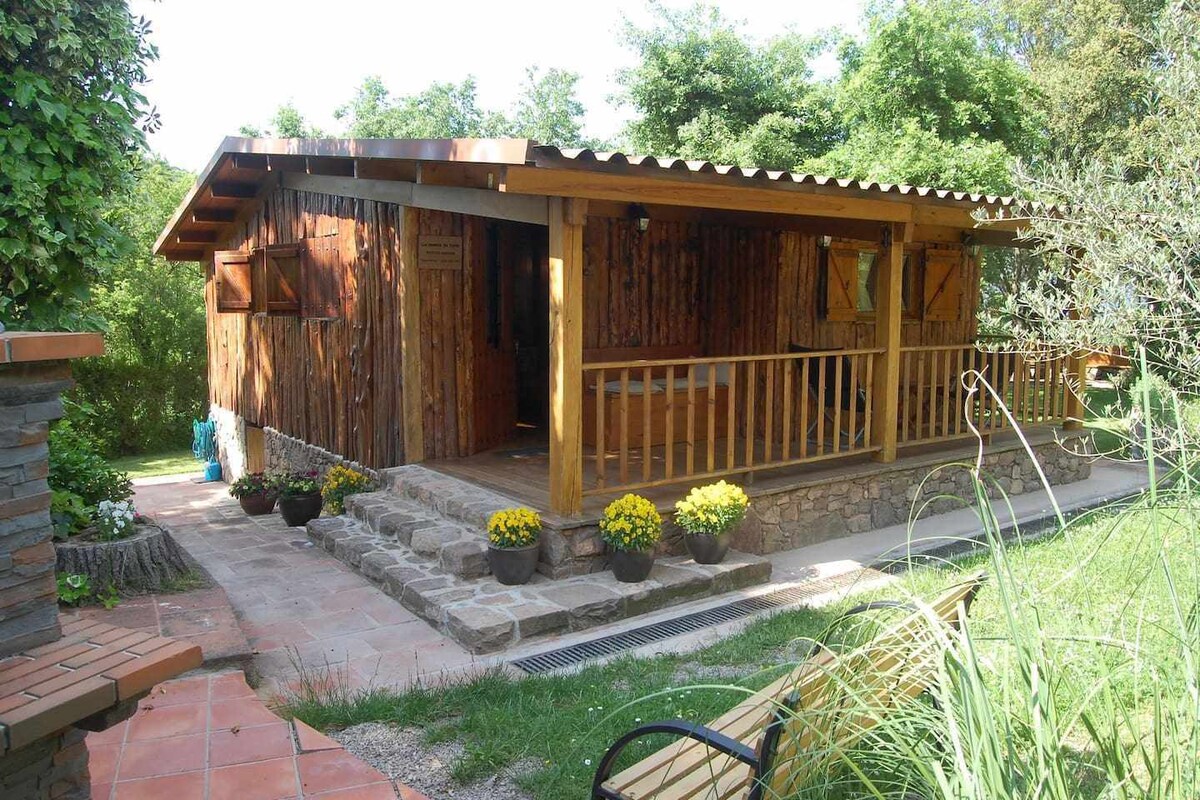 Skaists koka namiņš kalnā Santjūlijas pakājē, skaistā kalna nogāzē ar lielu veģetāciju un skatu uz Pirenejiem, no kura paveras skats uz Coma negro Canigu un plašu panorāmas skatu uz GARROTXA ziemeļu daļu. Netālu no Sant Jaume de Llierca atrodas 6 km gara trase, 500 m augstumā,tā ir lieliska vieta visu veidu ekskursijām , Cerquita upe ar kristāldzidriem baseiniem un stundas laikā pludmalē ,Costa Brava, var sauļoties.