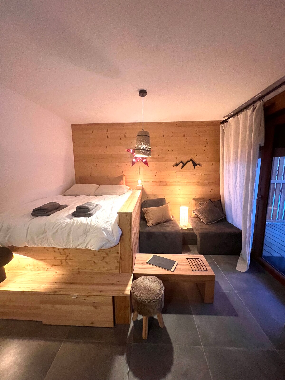 La Cabane var uzņemt līdz 7 personām. Gultasveļa ir papildu pakalpojums. Dzīvokļa platība ir 55 m²+ 25 m² terase Atrodoties terasē, kas atrodas uz dienvidiem vērstā terasē, paveras panorāmas skats uz dienvidu Alpu kalniem, no kuriem paveras skats uz sniegotiem kalniem. Kad ārā ir auksts, sasildieties pie skursteņa, sēžot mājīgā kluba krēslā: jūs varat iztēloties sevi vecā kalnu namiņā, kas ir aprīkots ar Wi-Fi, televizoru un visu moderno komfortu.