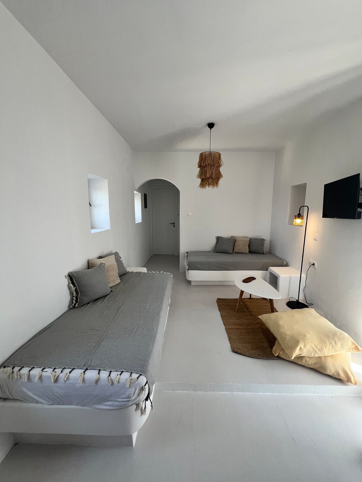 The apartment Rodia is a luxurious apartment and breathtaking holiday destination located on the beautiful Greek island of Antiparos. This offers guests a unique and unforgettable experience, with panoramic views of the Aegean Sea and direct access to a beautiful beach. The apartment is designed to provide the utmost comfort and relaxation for its guests, with spacious and elegantly decorated rooms, a kitchen, and a large outdoor area perfect for enjoying the sun and the sea breeze.