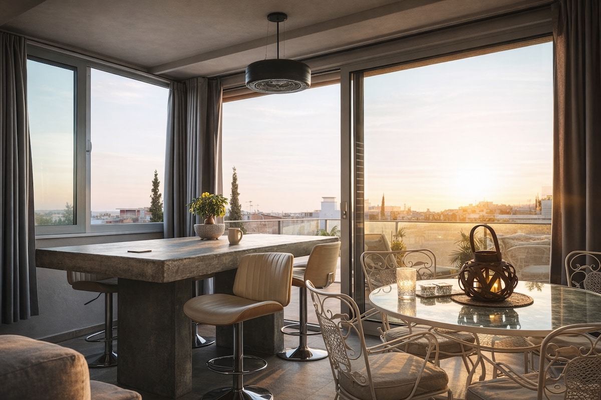 Gaišs lofts ar skatu uz pilsētas panorāmu un atsevišķu džakuzi Glifadā. Stilīgas 87 m² platības telpas augšstāvā ar lieliem logiem un plašu skatu uz pilsētu. Var uzņemt līdz 4 viesiem (1 divguļamā gulta “King” + 2 dīvāngultas). Bezmaksas minibārs un ātrs Wi-Fi (Starlink). Pastaiga līdz Glifadas centram (800 m), kur atrodas restorāni, bāri un iepirkšanās iespējas. Lidl, Adidas un Nike veikali 300 m rādiusā. Tuvumā atrodas Vulas, Vuliagmenas un Kavuri pludmales, un aptuveni 40 km attālumā – Poseidona templis Sūniona ragā. Metro stacija atrodas aptuveni 2,5 km attālumā. Ērta bezmaksas autostāvvieta tuvumā.