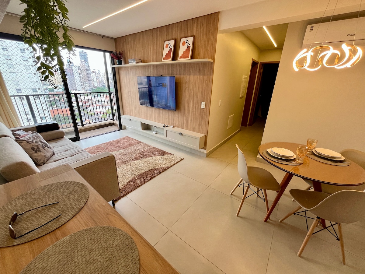 ❗️Unikāls, elegants un izsmalcināts jaunais daudzdzīvokļu nams🤩, kas radīts, lai jūs varētu justies kā mājās. Noskatieties savu iecienītāko filmu guļamistabā vai viesistabā modernākajā viedajā televizorā ar gaisa kondicionētāju, ēdamgaldu un īpašu darba vietu. Atpūtieties labākajā gultā, izbaudiet gardāko dušu, baudiet balkonu un skaistu saulrietu ar skatu uz parku un izbaudiet mūsdienu Setor Bueno labāko Goiânia reģionā! Condomínio Tai Residências