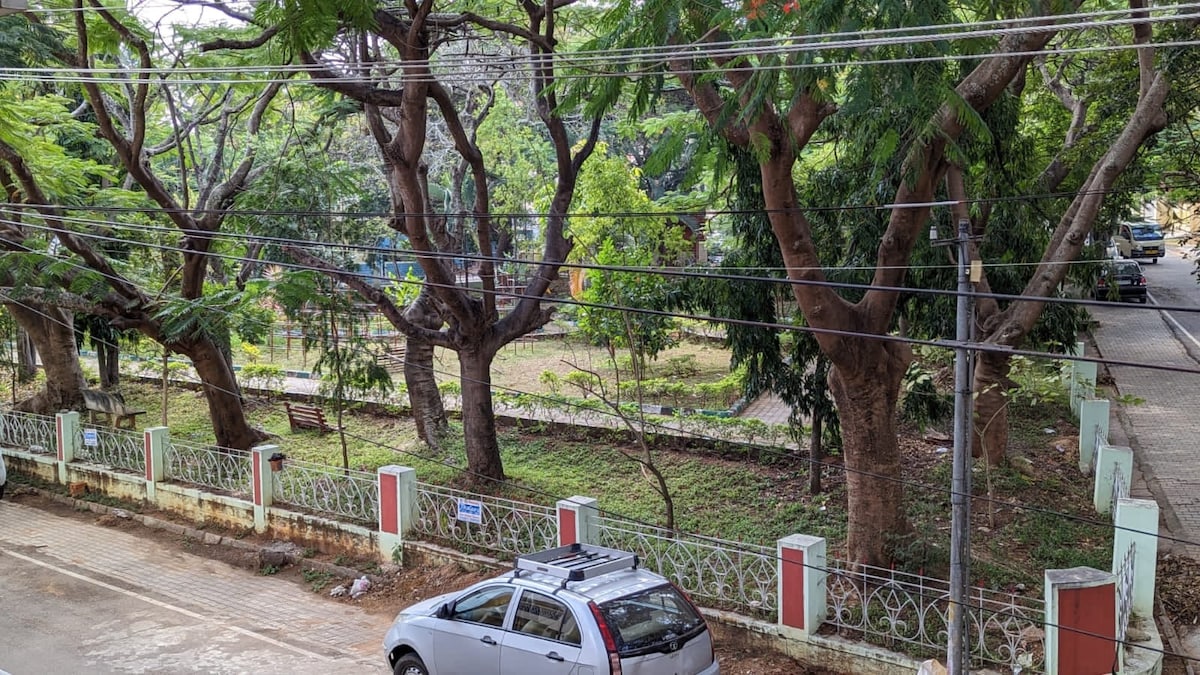 Mājoklis “Chirping Birds”, Gokulama, Maisūra. Šis pirmajā stāvā esošais dzīvoklis (bez lifta) ir daļa no neatkarīgas divstāvu mājas, kas jums piedāvā • Plašs balkons un atpūtas zona • 2 guļamistabas ar gaisa kondicionētāju, viena ar savienotu un otra ar koplietošanas vannasistabu • Pilnībā aprīkota virtuve • Dzīvojamo istabu • Privāta ieeja, kas nodrošina pilnīgu privātumu • Autostāvvieta pieejama uz ceļa; tas ir ļoti plats, drošs un ar ierobežotu satiksmi (skatiet attēlus). . Autostāvvieta pie mājokļa, tikai tad, ja pirmajā stāvā nav viesu.
