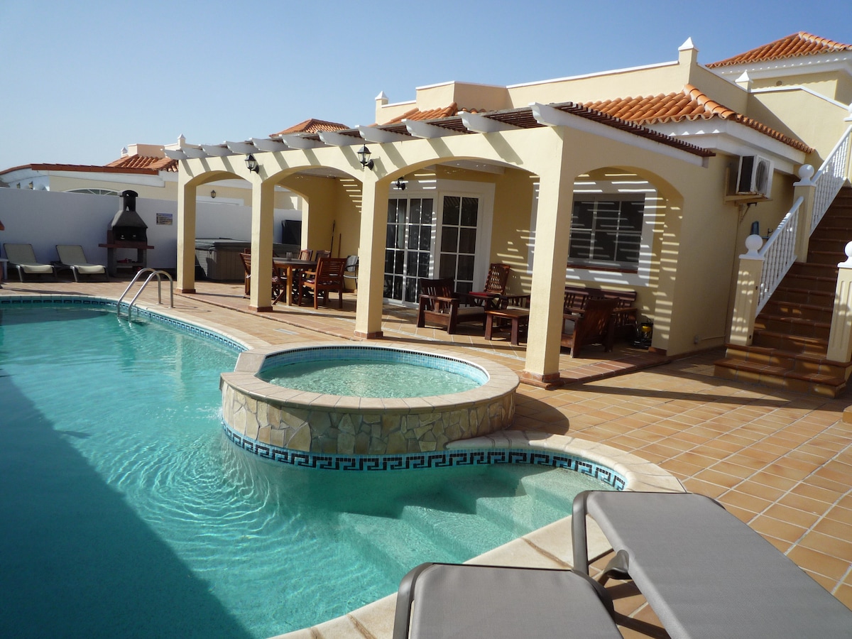 Skaista, mierīga vieta, Fuerteventuras golfa laukums, 10 minūšu gājiena attālumā atrodas zeltaini smilšu pludmale, tirdzniecības centrs, lielveikals, kafejnīcas un rotaļu laukums. Atjaunots, relaksējošs, ērts, tīrs, mājoklis no mājām, ideāli piemērots ģimenēm visu vecumu cilvēkiem. Privāts baseins. Bezmaksas Wi-Fi. Bērnu gultiņa, sterilizators, šūpuļtīkls, rotaļlietas, puzles, grāmatas, galda spēles. Britu TV, SKY, xBox360. Nodrošināta gultasveļa, pludmales dvieļi. (Papildu maksa par baseina apkuri, baseina drošības žoga nomu, gaisa kondicionētāju)
