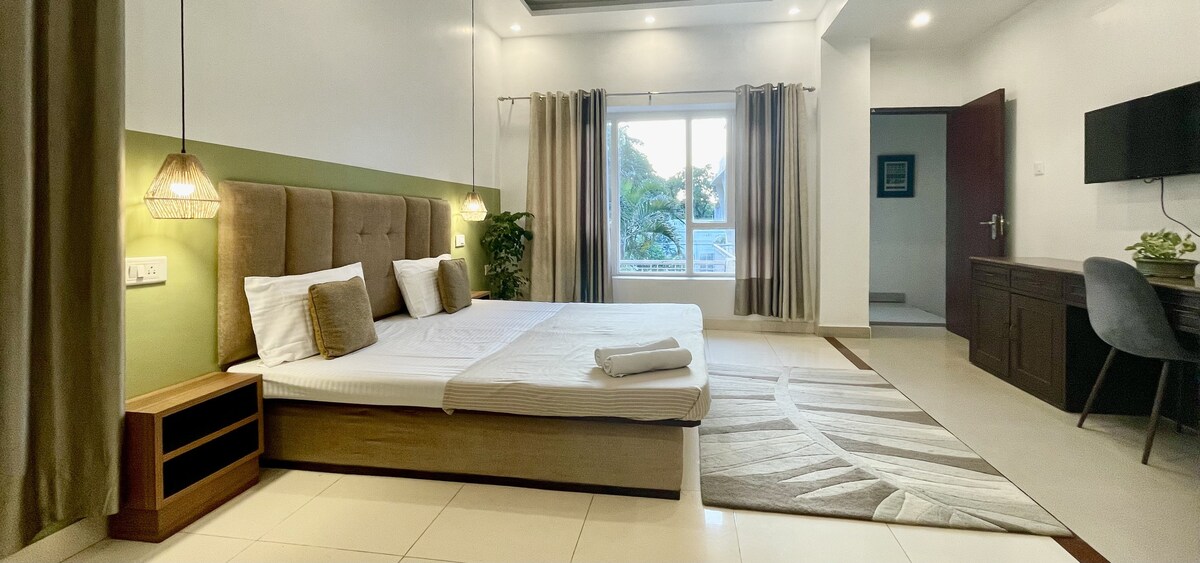 ♂Iekārtojieties ērtā, eleganti iekārtotā Studio tipa dzīvoklī, kas ir pat lielāks nekā jebkurš viesnīcas numurs, ar savu atsevišķo virtuvi, pašā Gomtinagar sirdī. Šis 2. stāva modernais studijas dzīvoklis ir ideāli piemērots 4 viesiem. Tās lielie erkeri un stikla balkoni paver skatu uz zaļumu un rosību ap īpašumu. Jūsu ērtībai iepirkšanās centri, lielveikali, ēstuves, veikali, veļas mazgātavas utt. atrodas tikai pastaigas attālumā no šīs vietas.