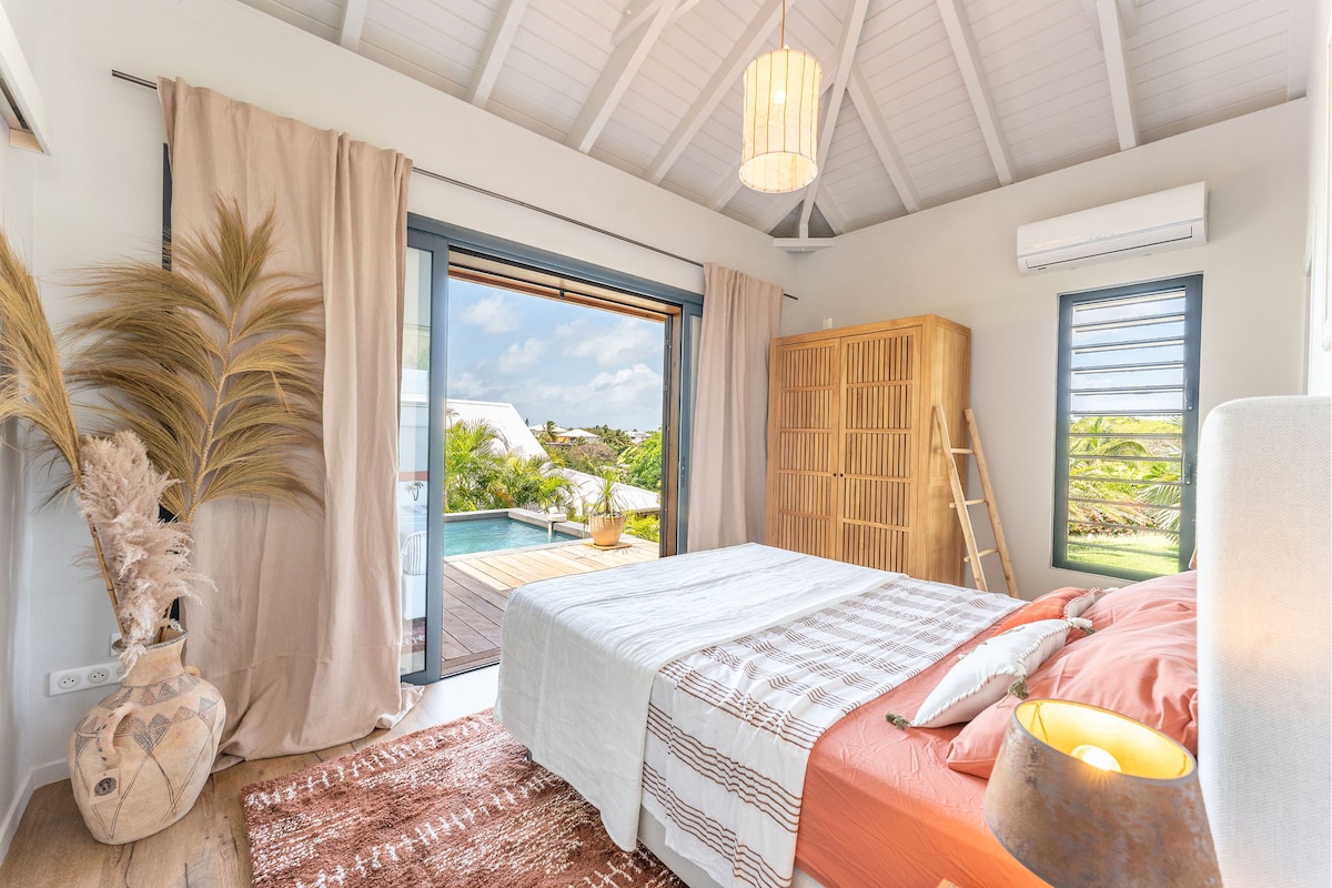 Laipni lūdzam mājās, nāciet un izbaudiet Karību jūras reģiona saldumu lieliskā arhitekta mājā pie ieejas Le Gosjē. Villa Archimède ir unikāla vieta, kur ērti piekļūt visam, ko Gvadelupa piedāvā slinkā vidē. Iedzeriet rīta kafiju terasē pilnīgā privātumā, tad ar dvieli uz pleca dodieties uz pludmali mazāk nekā 2 minūšu laikā. Kad jūs atgriežaties mājās, āra duša, tad uzvarētājs trio: punch-pool-barbecue!!!