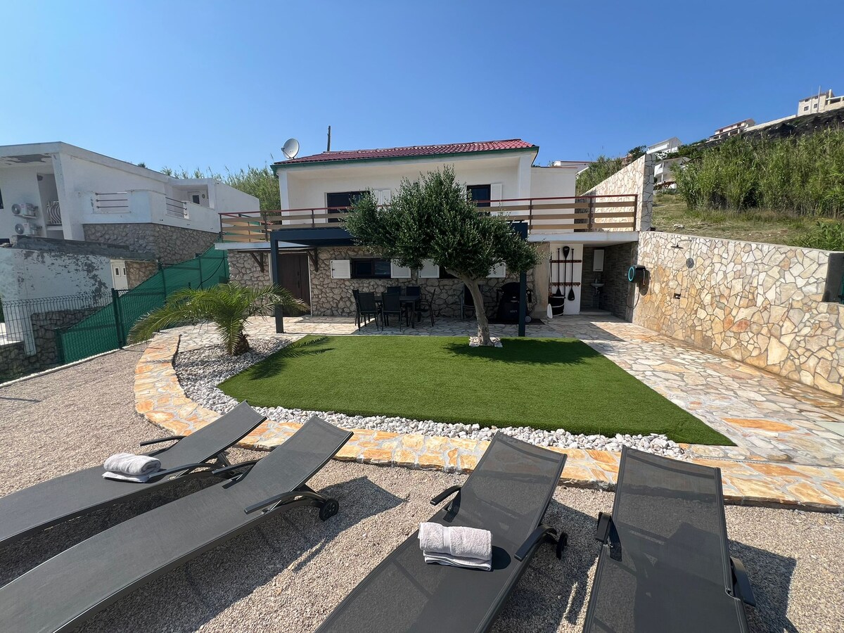 Izbaudiet divstāvu māju, 3 guļamistabas, tualeti ar vannas istabu,dzīvojamo istabu ar TV un terasi ar skatu uz jūru. Pirmajā stāvā ir viena guļamistaba, arī tualete un veļas mašīna un virtuve 10 cilvēkiem, cepeškrāsns, trauku mazgājamā mašīna, tējkanna. Abos stāvos ir gaisa kondicionieris un wifi. Ārā ir pagalms,kam karstās vasaras dienās vienmēr ir ēnojums, un liels grils. Pagalms ved uz pludmali, tikai 10 metru attālumā.