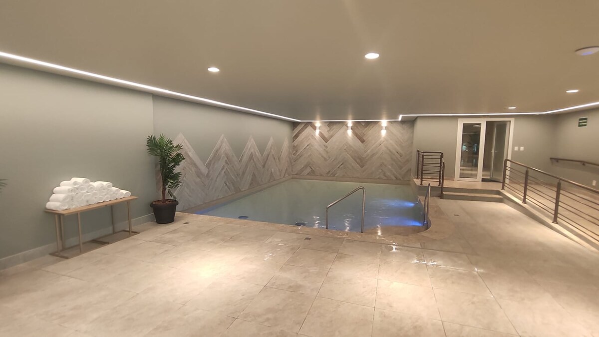 Lielisks dzīvoklis ar apsildāmu baseinu.