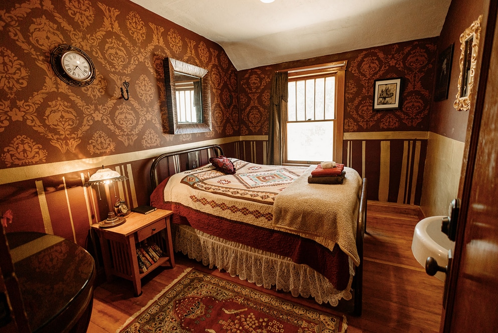Šī divstāvīgā istaba ir lieliski piemērota grupas piedzīvojumiem, un tajā var uzturēties 9 cilvēki. Aprīkots ar (3) gultu komplektiem. Visu apakšā ir pilns izmērs, bet augšā - divvietīgs numurs. Ir nodrošināta gultasveļa un dvieļi. Numurā ir mini ledusskapis, mikroviļņu krāsns, ventilators un purva dzesētāja ierīce. Moderna pirts blakus durvīm un iekštelpu āra virtuve bez maksas visiem. Jūsu ērtībai pieejams bezmaksas bezvadu internets un monētu veļas mazgātava.