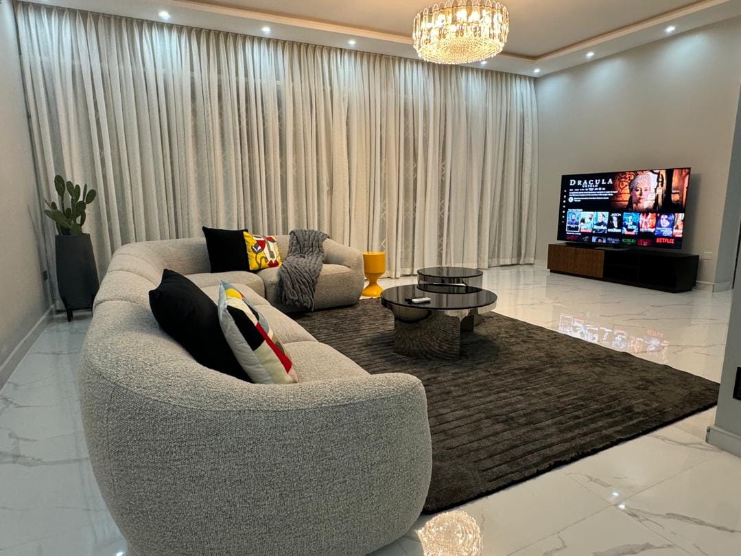 Welcome to your private resort in Accra. Nubian Villa offers a private infinity pool, a 36-jet hot tub with its own bar and hanging chairs, a fully equipped gym, and curated chef services — all within a secure, luxury 4-bedroom residence. Designed for families, executives, and discerning travelers, the villa combines privacy, comfort, and seamless service — including airport pickup and a standby silent generator for uninterrupted power.