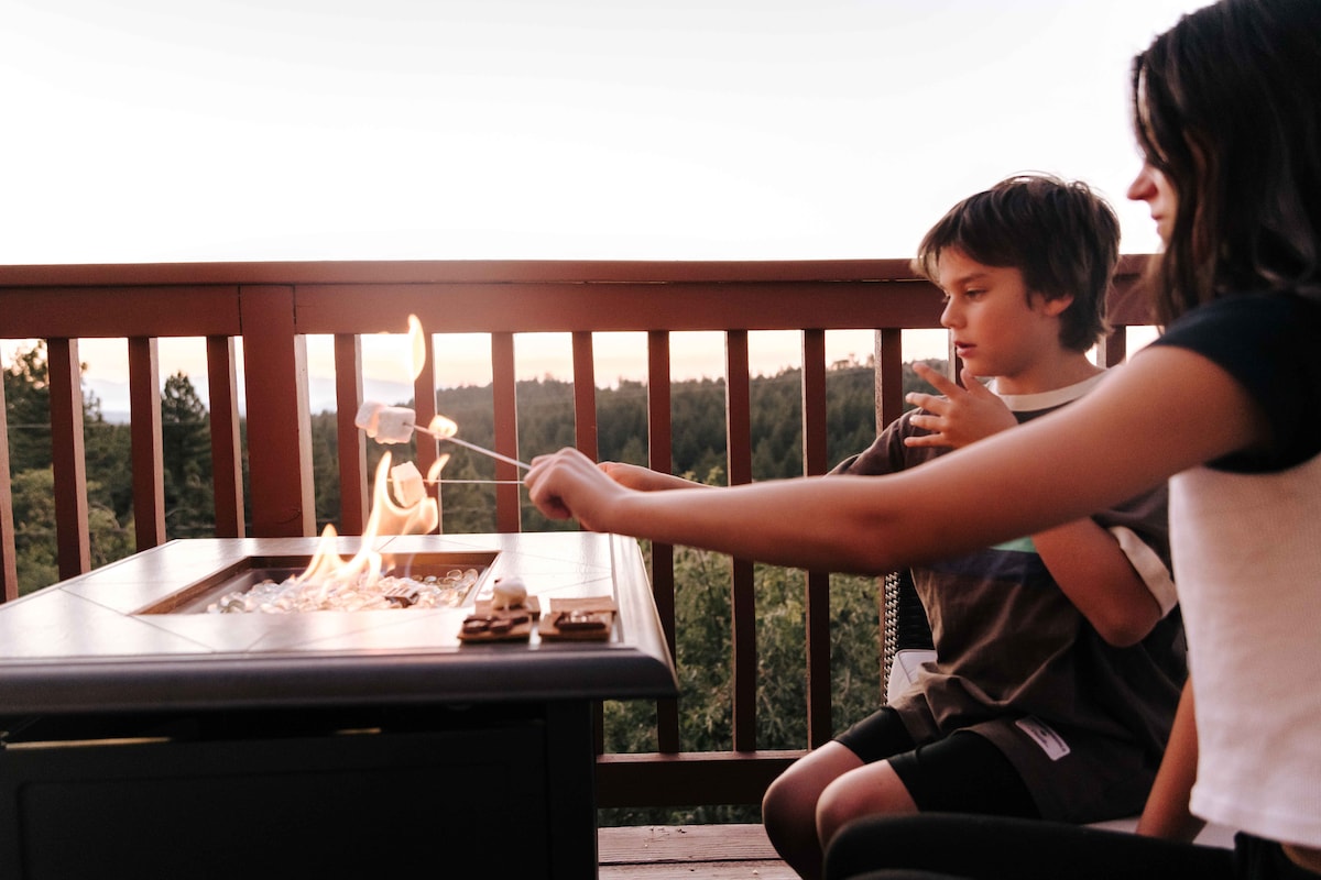 Treetop Cabin, Sunset Views, BBQ, Fire Pit, Trails