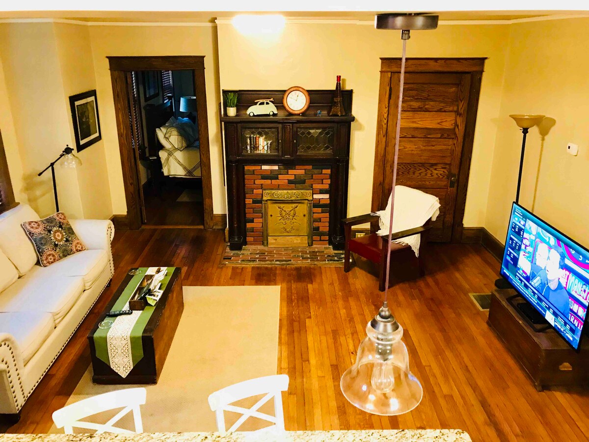 Šis dinamiskais un privātais dupleksa dzīvoklis, kas paredzēts piedzīvojumam, atrodas Grīnvilas pilsētas centra rajonā. *BEZ MAKSAS* Autostāvvieta uz vietas. Izcila atrašanās vieta, ja vēlaties atrasties netālu no pilsētas centra, šī ir īstā vieta! Pastaigas attālumā līdz Falls Park, Swamp Rabbit Trail, Main Street un daudziem restorāniem! Ērts un grezns ar bilžu cienīgiem dekoriem un eklektiskām detaļām! Zinoši saimnieki, lai gūtu vislabāko pieredzi Grīnvilā. Jūs noteikti izbaudīsiet uzturēšanos The Green Getaway!
