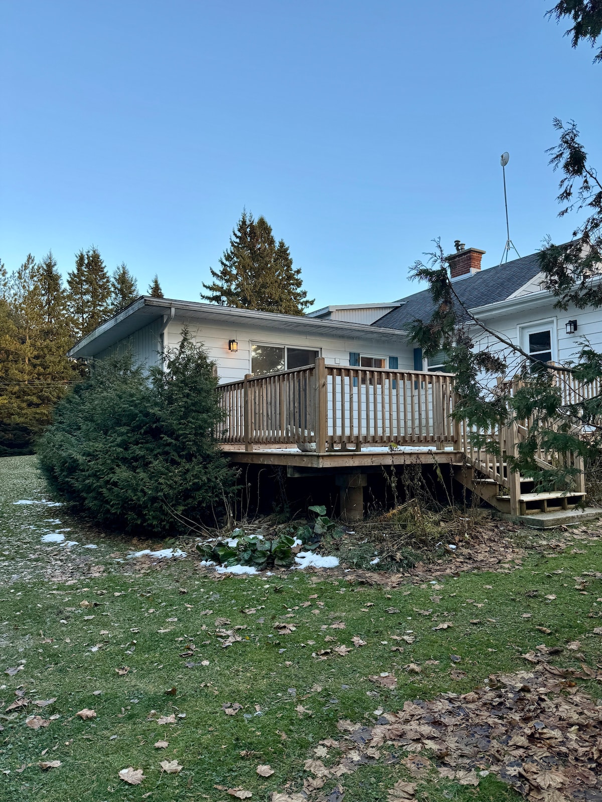 A peaceful, retreat in the heart of Meaford, situated on twenty-four beautiful acres, surrounded by mature trees, trails, orchards and stunning views, yet only three mins to downtown with the ever popular Meaford Hall, restaurants, shops, harbour, library and so much more. Water access is also very close by. Bring your water toys in summer, and your snow toys in winter! Our place is not suited for children under 10 so please consider that when requesting.