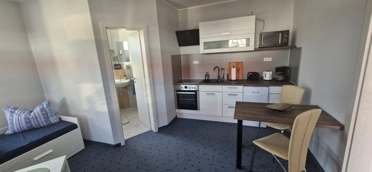 Ar prieku piedāvājam jums uzturēšanos mūsu nesen atjaunotajos dzīvokļos vēsturiskajā Pension Altstadt, kas atrodas Freibergas centrā. Ēka apvieno oriģinālu šarmu ar atjauninātām papildērtībām. Dzīvokļi ir novietoti atpakaļ no ielas uz klusāku uzturēšanos un ietver piekļuvi kopīgam dārzam. Tie ir piemēroti gan atsevišķām personām, gan draugu grupām, kas vēlas uzturēties vienā mājā. Šajā dzīvoklī (Nr.6) ir divguļamā gulta, neliela virtuve un viss, kas nepieciešams, lai mājoklis būtu ērts.