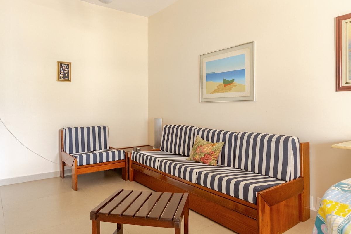 Muito bem localizado, há uma quadra da bela Praia das Pitangueiras (140 m), com 2 vagas na garagem, recepção e segurança 24 horas, piscina com serviço de bar, serviço de Praia, serviço de camareira todos os dias, serviço de manutenção, é a acomodação ideal para a estadia da sua família. No térreo inaugurou o Smart Store, um mini mercado 24h, exclusividade do condomínio. Aqui os hóspedes estacionam seus veículos na chegada e só vão usa-los para o retorno, tudo pode ser feito a pé.