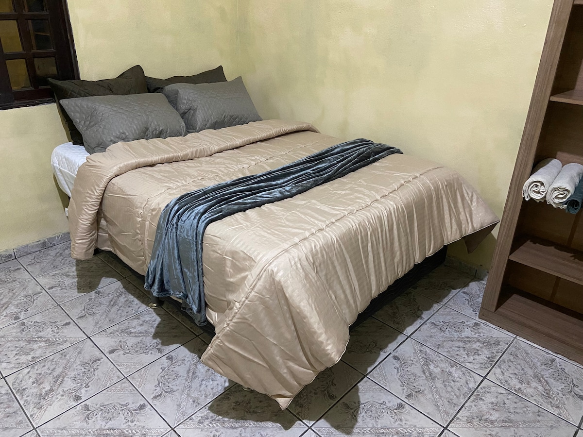 Paredzēts TIKAI lietotājiem no Guarulhos lidostas. VIENKĀRŠS mājoklis BEZ GREZNĪBAS, bet kluss un pazīstams, kur varat gaidīt savu lidojumu vai atpūtu apstāšanās laikā. Mājīga vide ar īpašu rūpību par tīrību, organizāciju un viesmīlību. Tā ir VIENKĀRŠA un bez LUKSUSA ĢIMENES ATMOSFĒRAS. Pirms rezervācijas apstiprināšanas izlasiet visu informāciju un uzdodiet jautājumus.