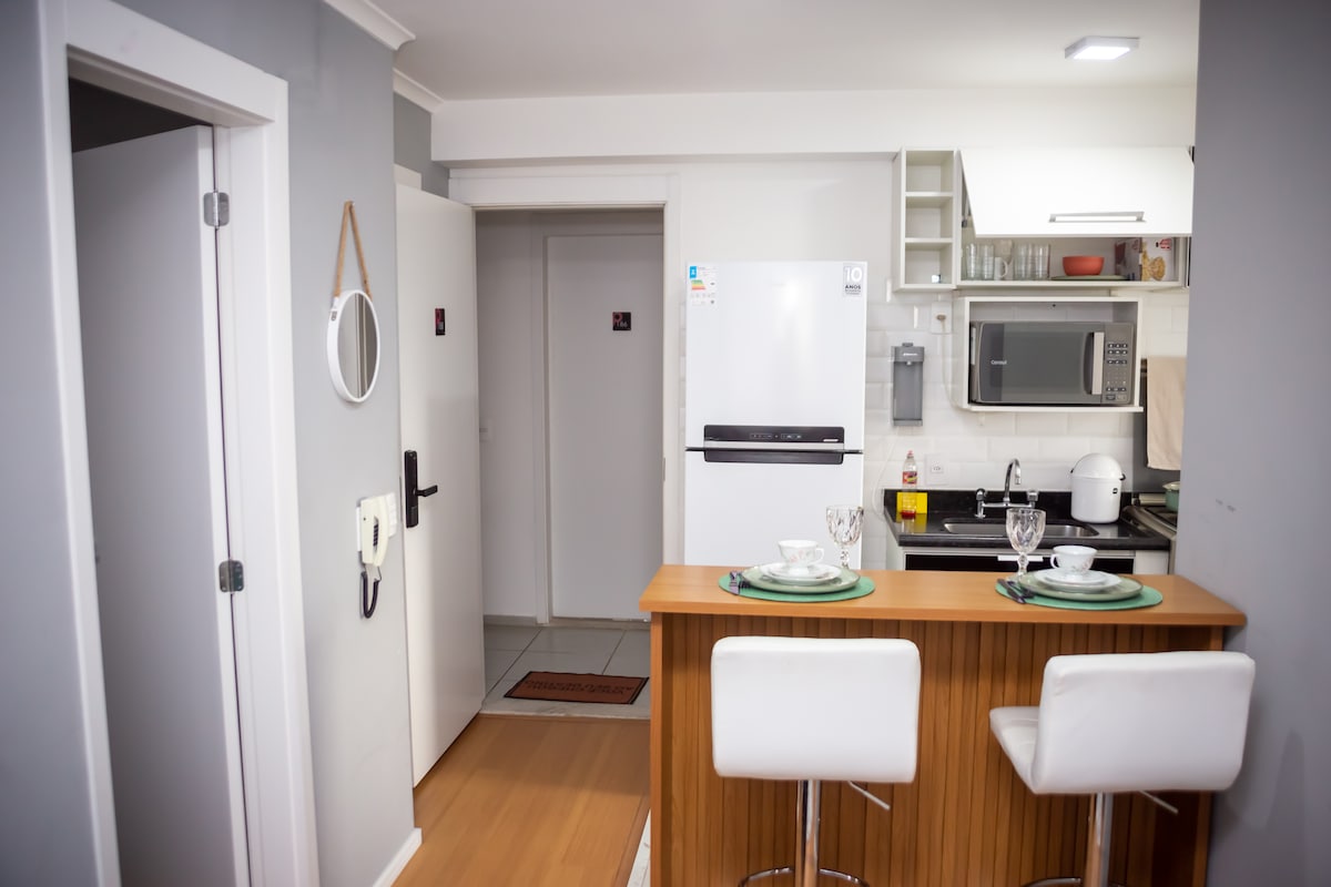 Mēbelēta un mājīga studija Gran Maia Giardino- Guarulhos. Ideāli piemērots īstermiņa vai ilgtermiņa rezervācijām. 2 cilvēki ar divguļamo gultu un dīvānu. Virtuve aprīkota ar plīti, mikroviļņu krāsni, Airfryer un citiem priekšmetiem. Daudzdzīvokļu māja ar peldbaseinu, fitnesa centru, rotaļu laukumu, rotaļlietu, veļas mazgātavu, mīļdzīvniekiem piemērotu, diennakts pārtikas precēm un bezmaksas autostāvvietu. Priviliģēta centrālā atrašanās vieta, ērta piekļuve galvenajiem pilsētas ceļiem, 7 km attālumā no GRU lidostas un netālu no tirdzniecības centriem, aptiekām un restorāniem.