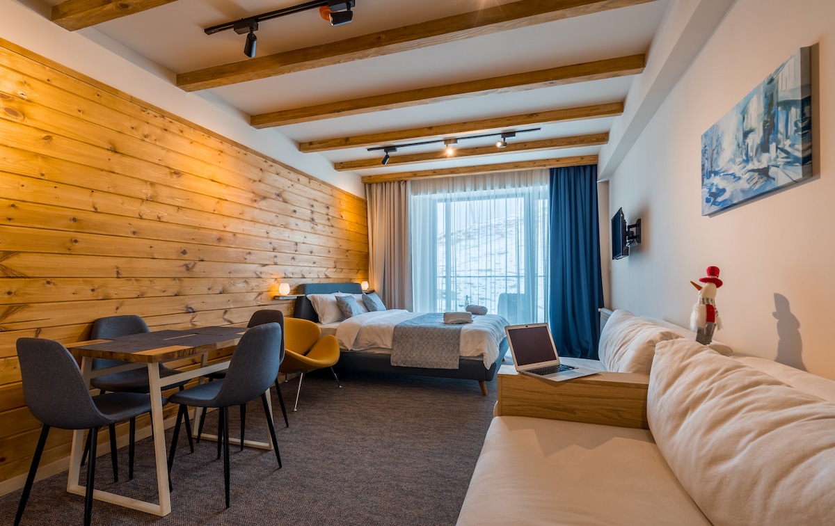 ALPIC, is the new Aparthotel in the New Gudauri complex, built in 2021. The Apartment has 1 studio and 1 bedroom. Walls decorated with wooden and red brick elements create an exceptionally cozy atmosphere in the apartment which is equipped with all the amenities. High speed internet is available through free WiFi. You can enjoy skiing , since ALPIC is nearby the gondola base and access to slopes. A perfect way to spend your holidays or combine skiing with remote work.