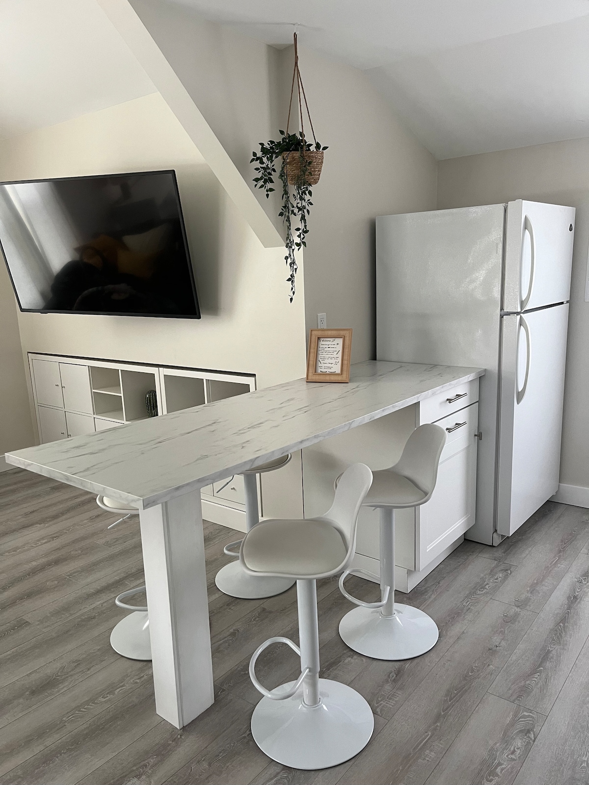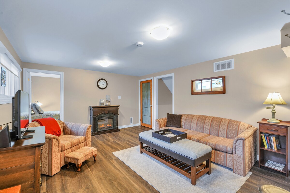 Mājīgs, kluss, vienistabas dzīvoklis Guelph centrā ar privātu piekļuvi, četrvietīga vannasistaba, virtuve ar mikroviļņu krāsni, tostera cepeškrāsns, 1 degļa indukcijas plītiņa un mini ledusskapis. Relaksējoša dzīvojamā istaba ar 43collu, HD, televizoru ar Roku. Bezmaksas autostāvvieta uz ielas pa nakti. Mēs atrodamies 2 minūšu gājiena attālumā no tuvākā restorāna. Vairāk restorānu, banku, iepirkšanās vietu, pārtikas veikalu un parku atrodas 10 minūšu pastaigas attālumā. No 2024. gada 1. februāra mums nācās pievienot 13% savai nakts nodevai, lai segtu tirdzniecības nodokli.