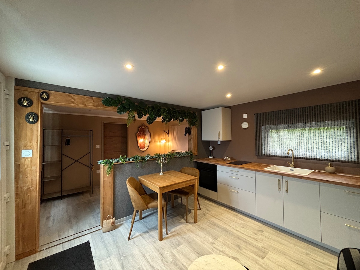 Atpūtieties šajā privātajā mājoklī, kas atrodas ļoti klusā vidē🌳; - Guļamistaba 2 personām ar augšstāva terasi. - Vannasistaba ar dušu. - Gaiša dzīvojamā istaba ar pilnībā aprīkotu virtuvi. - Viesistaba ar televizoru un elektrisko dīvānu. Brīvā dabā baudiet lieliskus skatus uz laukiem un privātu autostāvvietu. - Tuvu galvenajām automaģistrālēm. - 15 minūšu attālumā no Cité Europe. - 10 minūšu attālumā no Ardres ezera. - 15 minūšu attālumā no pludmales un Kalē ostas.