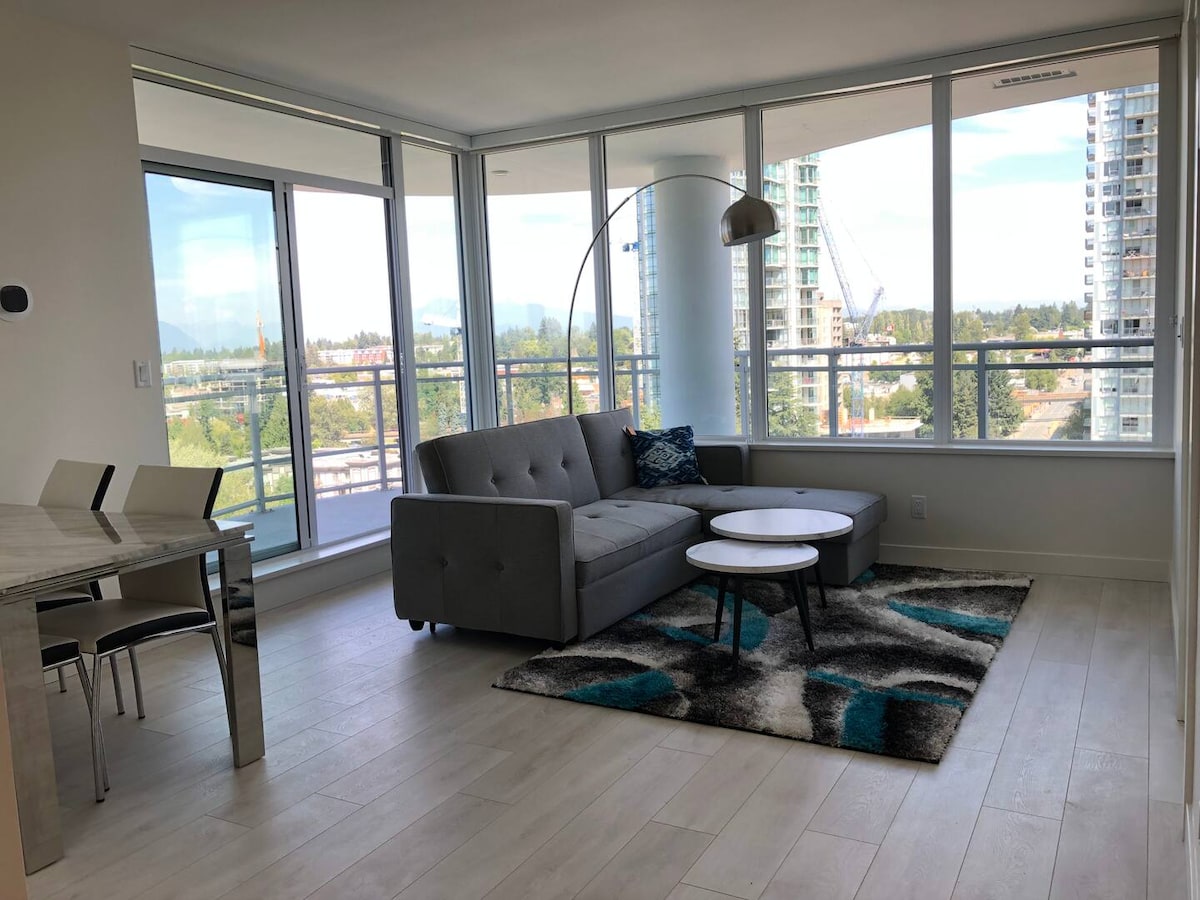 Welcome to our cozy unit in Surrey! This modern apartment offers a south-facing view of the city and mountains,along with top amenities such as Skyline gym and BBQ garden. Inside the unit, we offer stylish new funitures.There are two queen beds inside bedrooms. Additionally, there is an extra sofa bed available to accommodate additional guests. Location is exceptional ,within 5min walking distance you can reach Surrey Central Station,Central shpping mall,City Hall and SFU Douglas College.