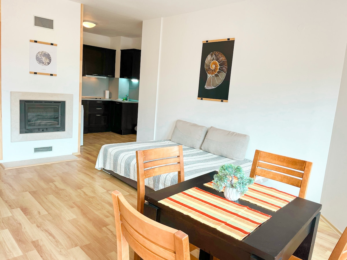 Idillisks, mierīgs un mājīgs vienistabas dzīvoklis ar privātu terasi un skatu uz apkopēm. Mājoklim ir unikāla atrašanās vieta, kas atrodas kalna virsotnē ar skatu uz visu Bansko pilsētu, bet pastaigas attālumā no Gondolas pacēlāja un Bansko pilsētas centra. Vieta ir burtiski akmens metiena attālumā no priežu meža un kalnu takām. Pašā dzīvoklī ir pilnībā mēbelēta virtuve, Wi-Fi, televizors, vanna un veļas mašīna.