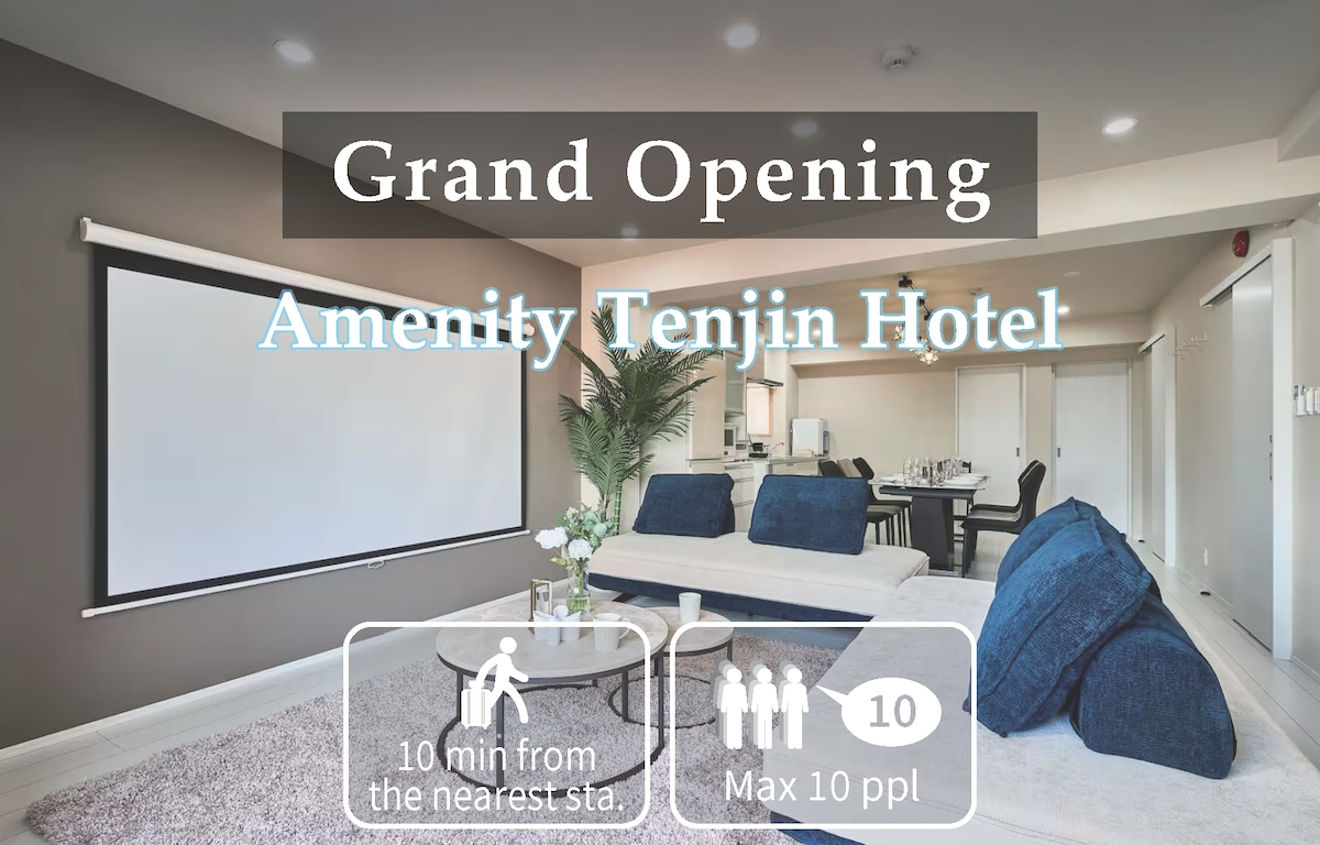 Fukuoka Tenjin / Maksimums 10 cilvēki / Plaša dzīvojamā istaba / Tenjin stacija 10 minūšu attālumā / Cena par mazāku cilvēku skaitu pēc vienošanās