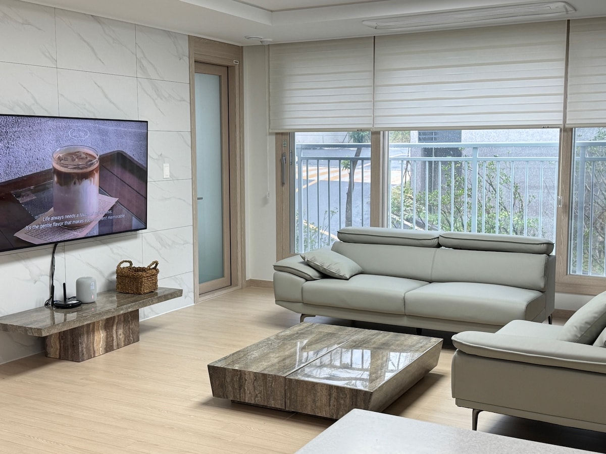 Terase ❗️Čedžu Tā atrodas Jeju 1st Street The Terrace Building, 5 Yeondong 6-gil, Jeju-si. <Netflix personīgais konts pieejams> - Gultas karaliene 1,5 m * 2 m (1500 mm * 2000 mm) Līdz lidostai ar automašīnu var nokļūt 10 minūšu laikā. Autobusu transports - Dodieties 332 vai 365 no Džedžu lidostas un izkāpiet [Jewon Apartment]. - Dodieties Nr. 466 no Džedžu lidostas - > Izkāpiet [Maison Glad Jeju] 3 minūšu gājiena attālumā no Shilla Duty Free veikala un autoostas. Atrodas lielākajā Ņūdžedžu pilsētas centrā. Lieliski piemērots kafijas vai alus baudīšanai āra terasē. Nodrošinātie priekšmeti 4 dvieļi par nakti, ziepes Šampūns, kondicionieris un ķermeņa mazgāšanas līdzeklis Fēns, matu taisnotājs Veļas mazgājamā mašīna/mazgāšanas līdzeklis/žāvēšanas statīvs Vīna glāzes/dažādas glāzes Ēdiena gatavošanas piederumi (katli, pannas, karotes un kociņi utt.) Kafijas kanniņa Elektroniskā cepeškrāsns Wi-Fi Uzglabāšana no plkst. 12:00 pusdienām pirms reģistrēšanās Uzglabāšana līdz plkst. 15:00 pēc izrakstīšanās Tas ir iespējams. * Bagāžas glabāšana ir iespējama arī papildu laikā.
