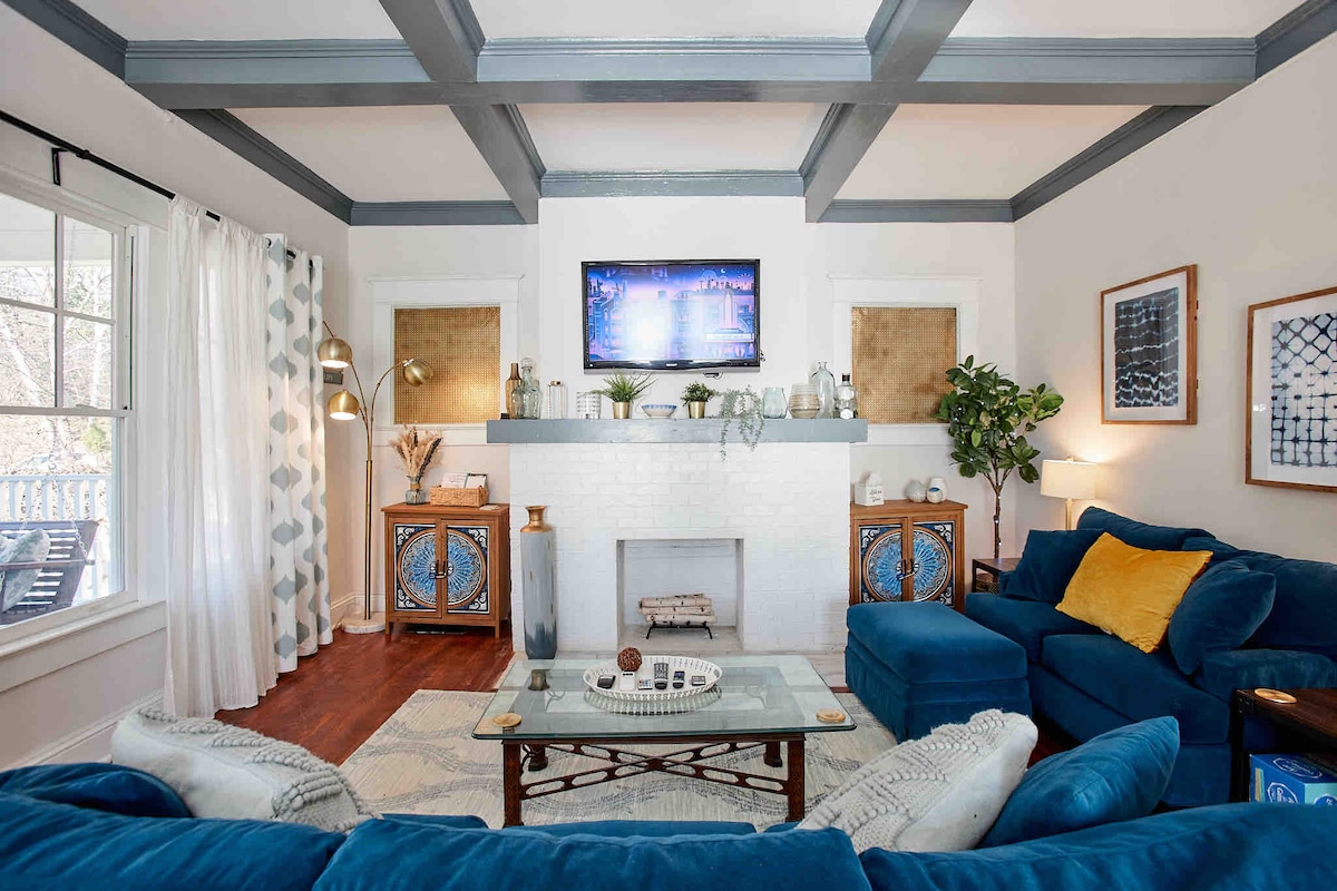 Spacious studio apartment in a quiet neighborhood in Historic West End Atlanta-mins from downtown. All the comforts of home - full kitchen w/cooking supplies, deluxe king size bed, working fireplace, TV w/Amazon Fire stick, DVD player w/ huge DVD collection. Outdoor spaces include a screened covered porch & an outdoor patio with a fire pit in the backyard. Just blocks from a major street with restaurants, a grocery store, shops & public transit all in walking distance.