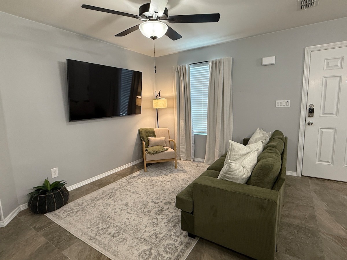Burvīgs mājoklis ar plašu viesistabu, kurā ir zaļi dīvānkrēsli, relaksējoša terase un pagalms. Katrā guļamistabā ir televizors. Ietver 1 automašīnas garāžu, veļasmašīnu un žāvētāju. Izcila atrašanās vieta - 5 minūtes līdz restorāniem, 10 minūtes līdz medicīnas centram un īss brauciens līdz Weslaco, McAllen/Edinburg, Brownsville un South Padre Island. Jūsu ideālais mājoklis prom no mājām