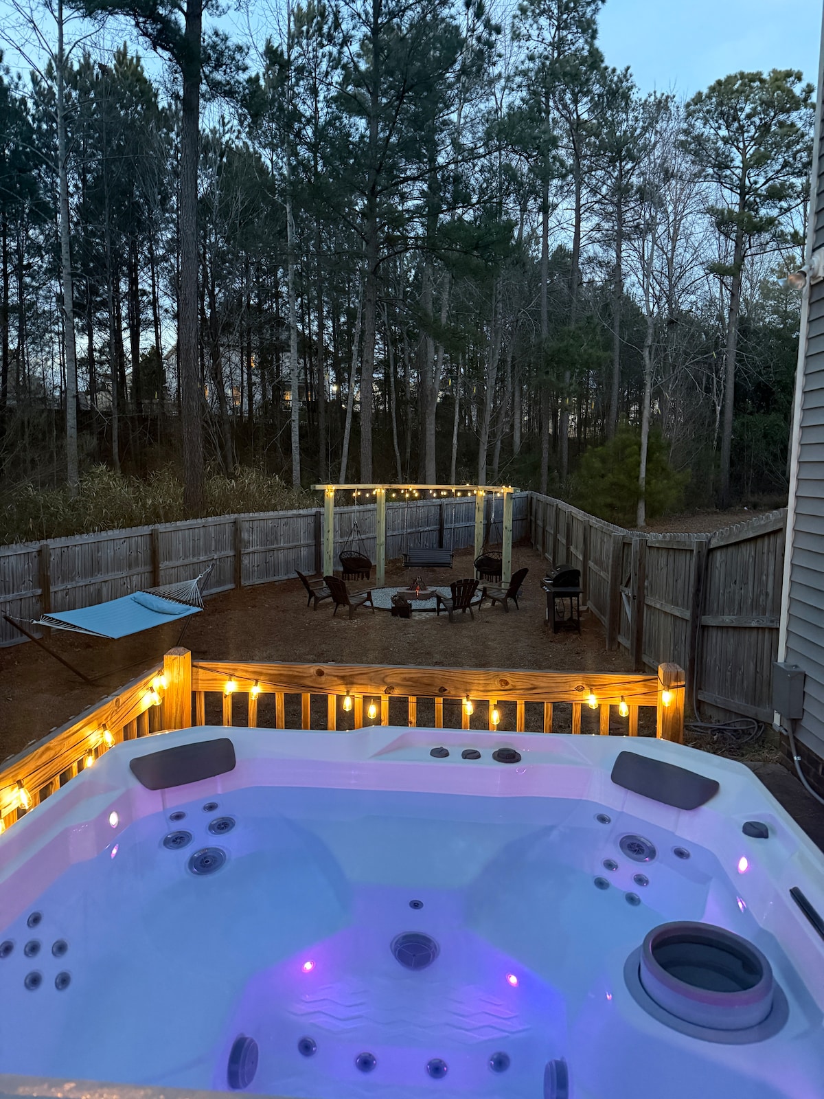 Laipni lūdzam mūsu burvīgajā mājoklī ar luksusa burbuļvannu! Šī ar mīlestību veidotā māja ir piepildīta ar apburošām priekšrocībām, lai uzlabotu jūsu uzturēšanos. Šis mājoklis ir aprīkots ar visu pamataprīkojumu jūsu komfortam un atpūtai, tostarp mājīgu ugunskura vietu un greznu burbuļvannu, un tas ir paredzēts, lai jūs varētu atpūsties un lieliski pavadīt laiku. Ar trim televizoriem un četrām ērtām guļamistabām jūs atradīsiet visu, kas nepieciešams patīkamai atpūtai. Šis mājoklis atrodas dažu minūšu attālumā no skolām, iepirkšanās, ēdināšanas un Fort Liberty