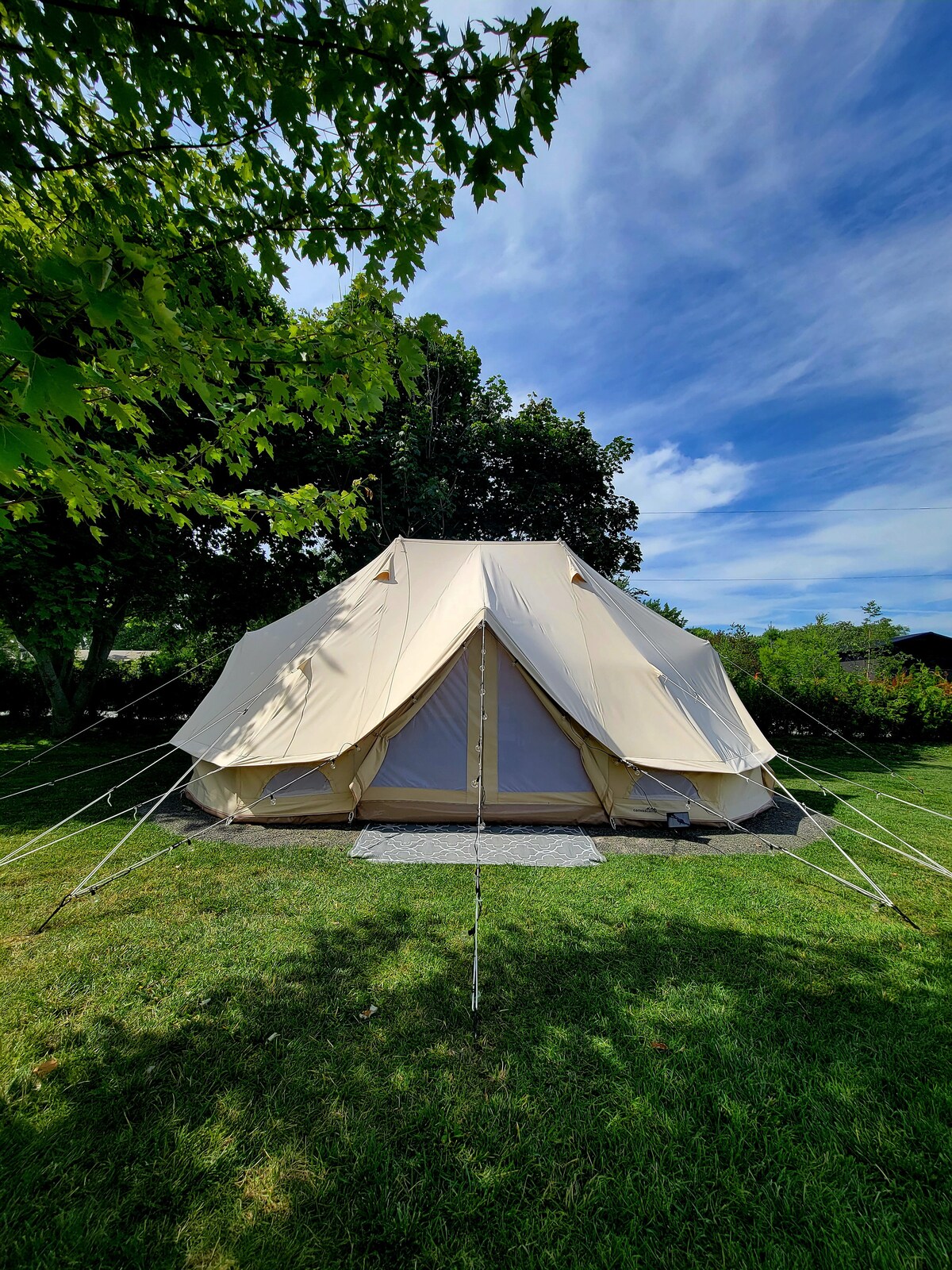 *Mēs esam nosaukti par labāko glempinga vietu Kanādā 2023. gadā Hipcamp!* Ideāla mājokļa bāze visiem tuvumā esošajiem pārgājieniem, ezeriem un piedzīvojumiem brīvā dabā. Atbrīvojieties no tā visa, kad paliekat zem zvaigznēm. Iekārtojieties ērtajā divguļamajā gultā. Peldiet lejup pa upīti. Atpūtieties šūpuļtīklā ar labu grāmatu. 16,5 pēdu zvanu telts atrodas blakus upītei, kas plūst cauri gleznainajam īpašumam. Teritorija ir aprīkota ar "queen" izmēra gultu, atpūtas zonu, ugunskura vietu un muskoka krēsliem.