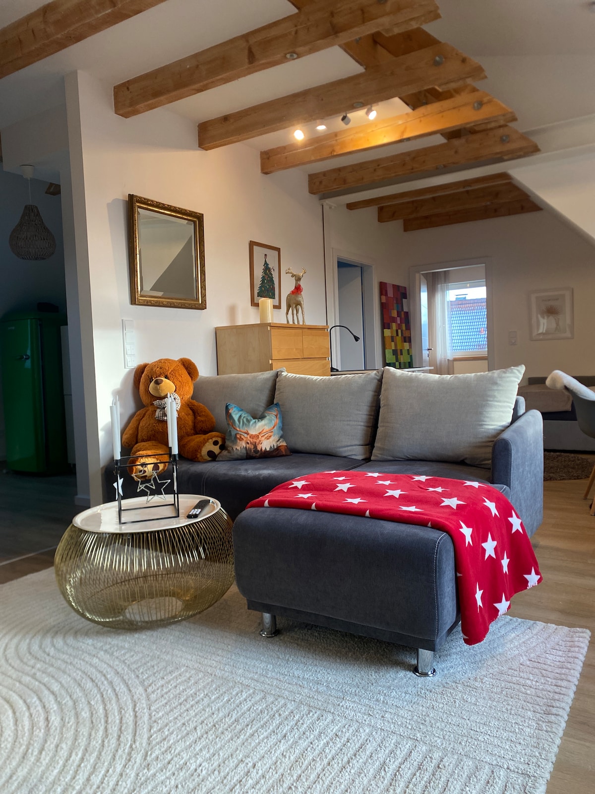 Kādreizējie bēniņi apburošā, vecā ēkā 2016. gadā tika uzbūvēti studijas tipa dzīvoklī, pievēršot uzmanību detaļām. Ir grūti atrast kaut ko, ko iegādāties. Pār nelielu jumta izeju var apskatīt Nirnbergas jumtus. Mājīgajā un unikālajā mājoklī varat vienkārši justies kā mājās un izbaudīt mieru. Centrāli izvietots, bet ļoti kluss, jūs varat nokļūt Nirnbergas centrā 10 minūšu laikā ar metro.