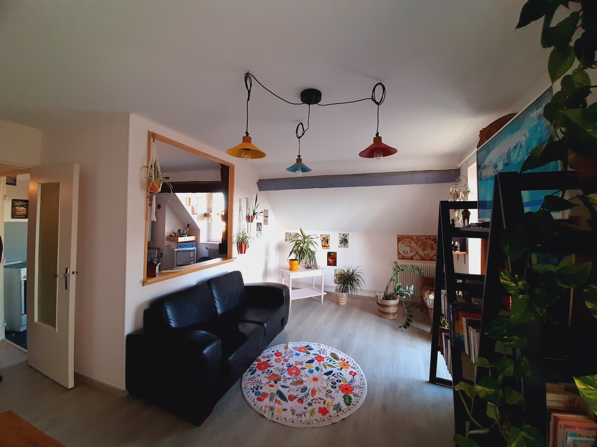 Atpūtieties šajā unikālajā un klusajā naktsmītnē, kas atrodas pašā Luxeuil Les Bains sirdī. Šis dzīvoklis šajā raksturīgās ēkas pirmajā stāvā ar akmens fasādi, kas tikko atjaunota un mēbelēta bohēmiskā stilā, var uzņemt divus cilvēkus uz vienu vai vairākām naktīm. Tuvākajā apkārtnē atradīsiet vēsturisko centru, veikalus, termālās vannas, kazino, kino..! Jums ir bezmaksas privāta autostāvvieta ēkas pakājē.