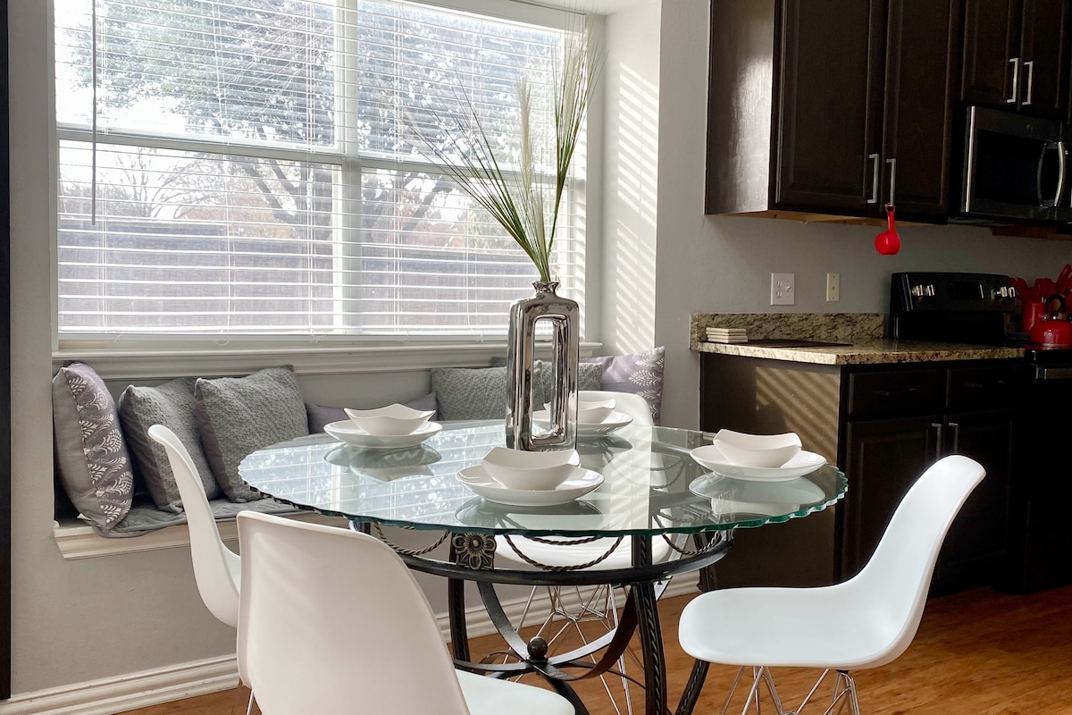 Atpūtieties šajā mājīgajā un stilīgajā mājoklī, kas atrodas izcilā vietā Carrollton TX. Šis skaistais mājoklis piedāvā visu, kas varētu būt nepieciešams darījumu cilvēkam, ceļojošajai medmāsai vai famiy. Neskaitāmu atrakciju, restorānu, mazumtirdzniecības, pārtikas veikalu un slimnīcu tiešā tuvumā. *20 minūšu brauciena attālumā no DFW lidostas un Love Field lidostas. *Mazāk nekā 6 jūdžu attālumā no tādām slimnīcām kā (Baylor Carrolton/Carrollton Regional Center, Methodist Hospital for Surgery, Texas Health Presbyterian, Baylor)