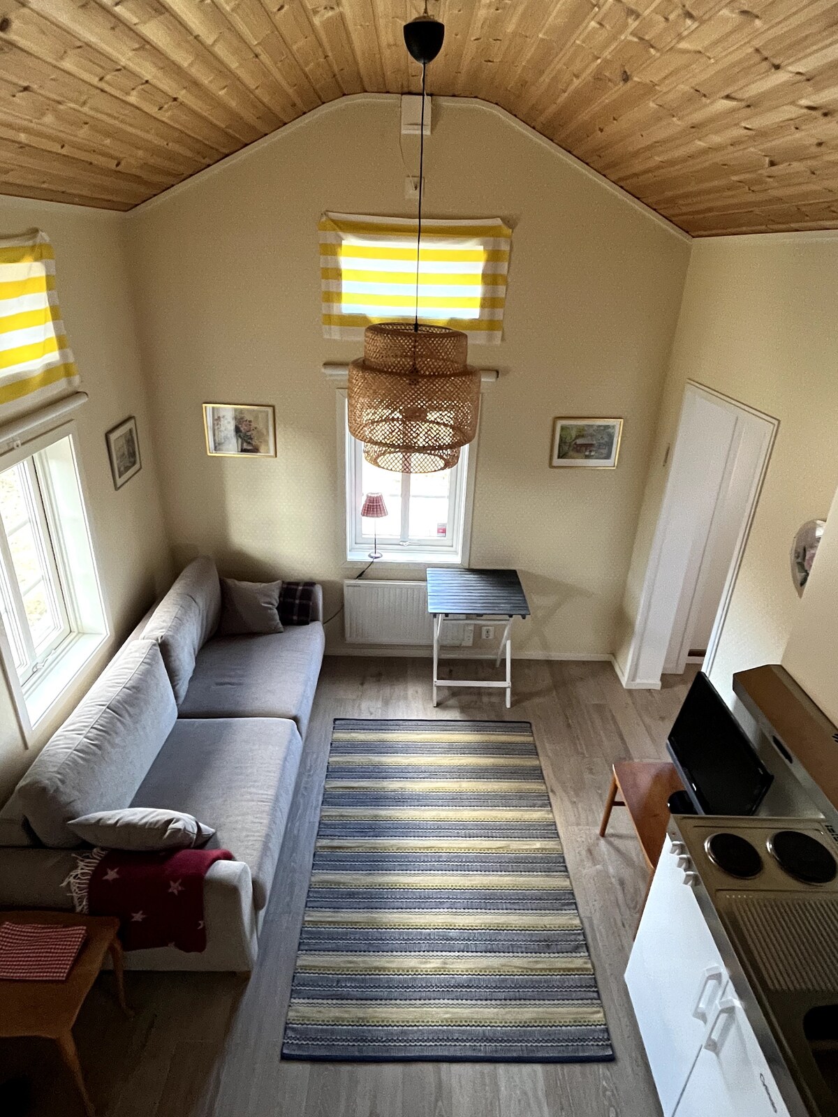 Istaba ar virtuvīti, 25 kvadrātmetri. Vannasistaba ar dušu. Divguļamā gulta (120 cm plata) un dīvāngulta divām personām. Mājoklis ir paredzēts 2 pieaugušajiem, bet tajā var izmitināt arī 2 mazus bērnus. Virtuvīte aprīkota ar plīti, ledusskapi, mikroviļņu krāsni, tējkannu, kafijas automātu. TV un Wi-Fi. Dvieļi un gultas veļa ir iekļauta. Jums būs pieejama arī veļas mazgātava, kas atrodas galvenajā ēkā. Mēs iekasējam 200 SEK maksu par gultasveļas u.c. tīrīšanu. Tomēr mēs sagaidām, ka pirms izrakstīšanās jūs veiksiet galīgo uzkopšanu.