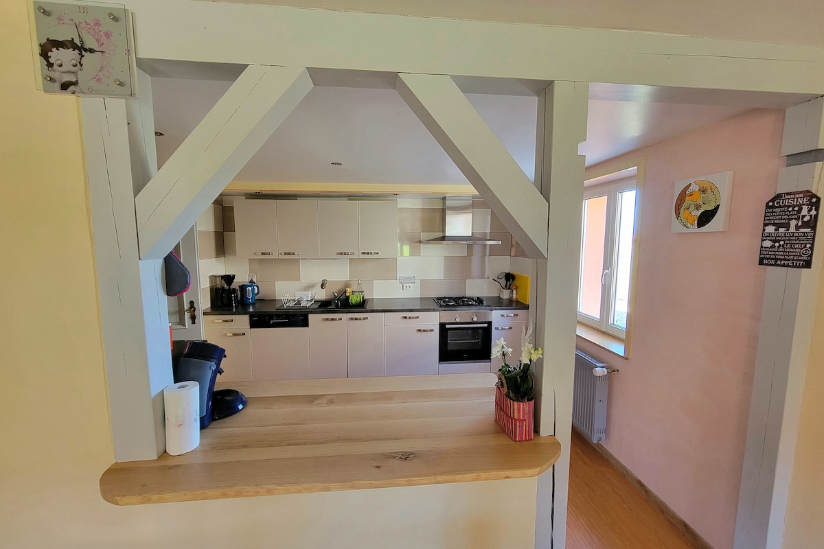 Mēs esam priecīgi jūs uzņemt mūsu burvīgajā dzīvoklī, kas atrodas neliela mierīga ciemata sirdī, dabas mīļotāji novērtēs tuvumu mežam, kur varat pastaigāties, braukt ar velosipēdu vai vienkārši mierīgi atpūsties. Pēc pieprasījuma no plkst. 19.00 varat arī nobaudīt mūsu garšīgo mājās gatavoto Lorēnas pastēti (15 € par 3 personām) – vietējo specialitāti! Rezervējiet tagad, lai dotos neaizmirstamā ceļojumā!