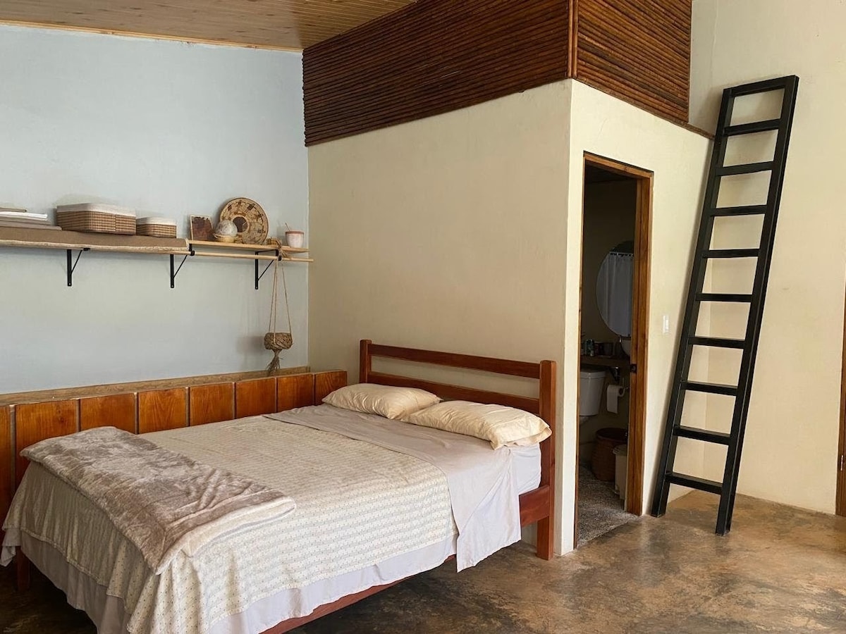 Sīkmājiņa ar dvēseli — ideāla vieta, kur atvienoties un atjaunot saikni. Pārdomāta dizaina 15 m² platībā ar elpu aizraujošu skatu uz Kluso okeānu, ērtu gultu, privātu vannasistabu, minivirtuvi, gaisa kondicionētāju, ventilatoru, terasi un Wi-Fi, lai jums būtu viss nepieciešamais. Neatkarīgi no tā, vai esat šeit, lai atpūstos, strādātu attālināti vai izpētītu tuvumā esošās upes, ūdenskritumus un pludmales — šī ir jūsu vieta. Sērfošana, neaizmirstami saulrieti, pilnīgs miers... un jā, arī jūsu pūkainais draugs ir laipni gaidīts! 🐾