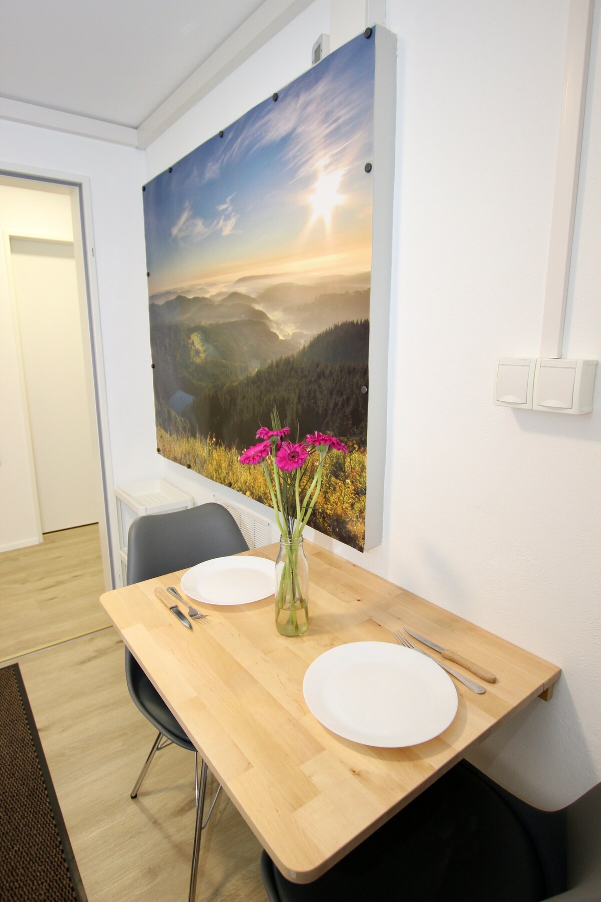 Laipni lūdzam mūsu nesen atjaunotajā 50 kvadrātmetru lielajā 1-istabas dzīvoklī skaistajā puskoka mājas ciematā Vörstetten. Freiburgas pilsētas centrs atrodas 10 minūšu brauciena attālumā, un tajā kursē sabiedriskais autobuss. Europa-Park atrodas 25 minūšu attālumā. Mūsu dzīvoklis, kas ir mēbelēts ar lielu mīlestību un ērti, atrodas apakšējā stāvā, un to ieskauj plašs dārzs. Augstas kvalitātes gulēšanas sistēma un klusā apkaime sola labu atpūtu.